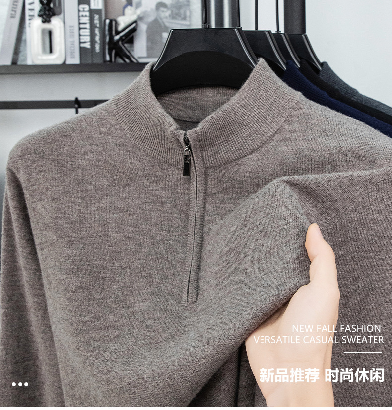 Осенний свитер из 100% чистой шерсти на молнии с половиной воротником, трикотаж, мужской осенне-зимний новый мужской трикотаж с утолщенным низом