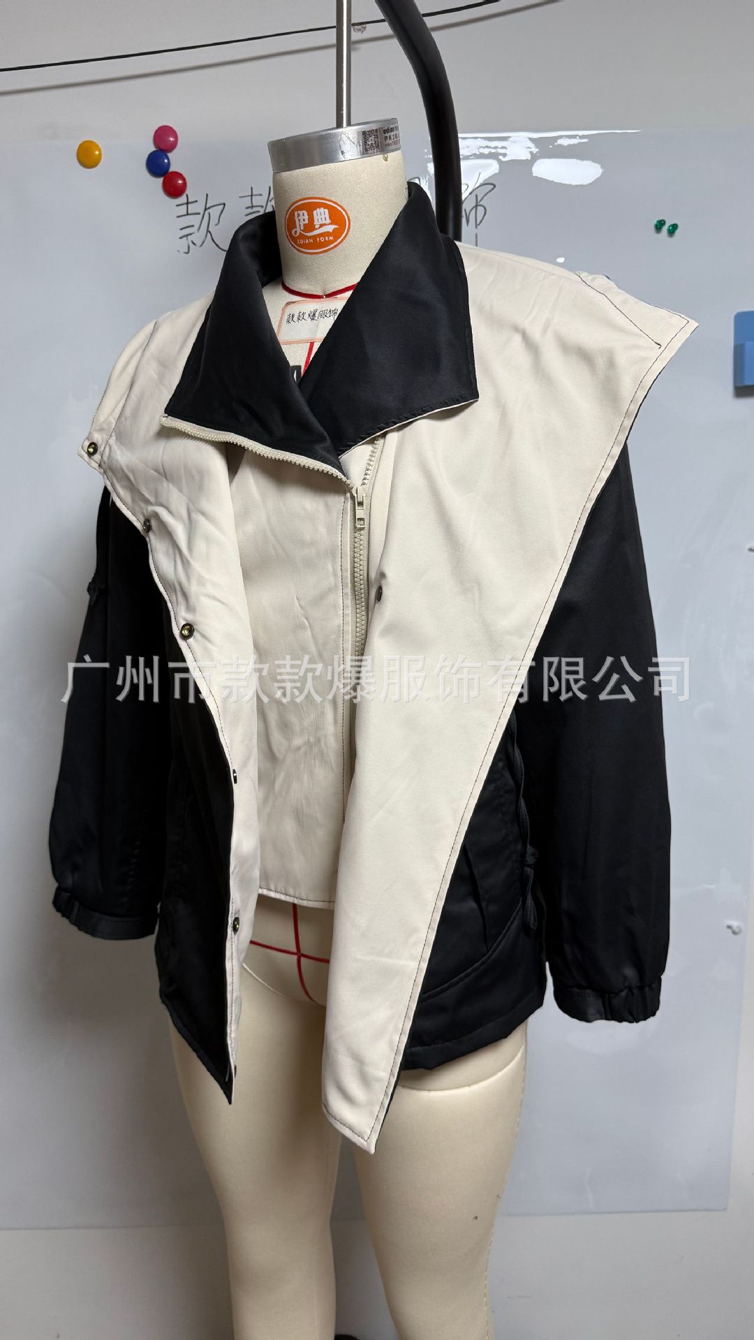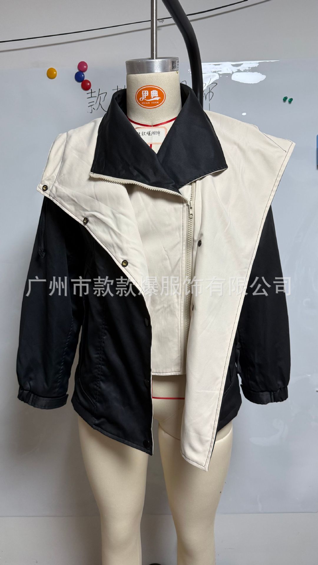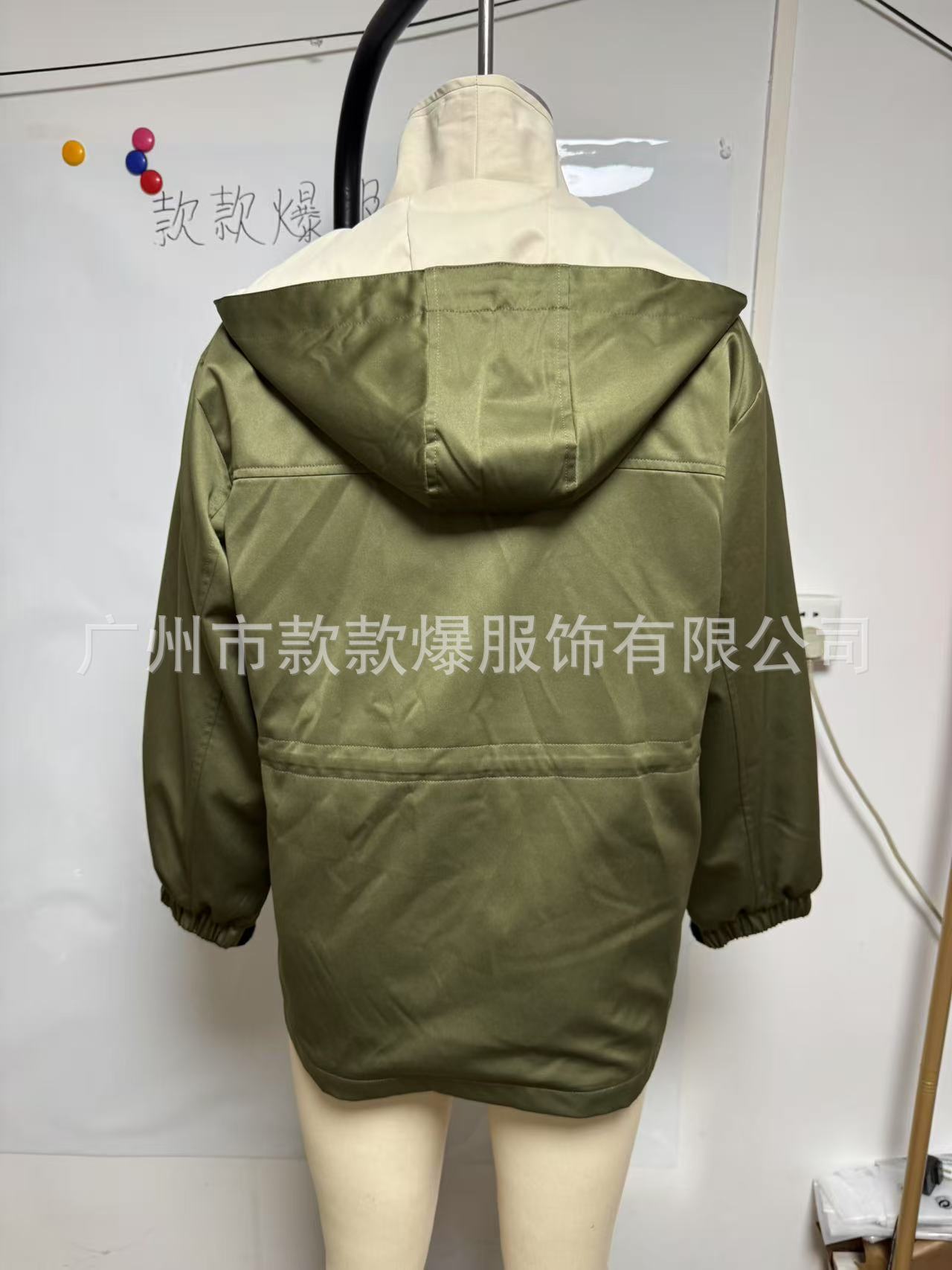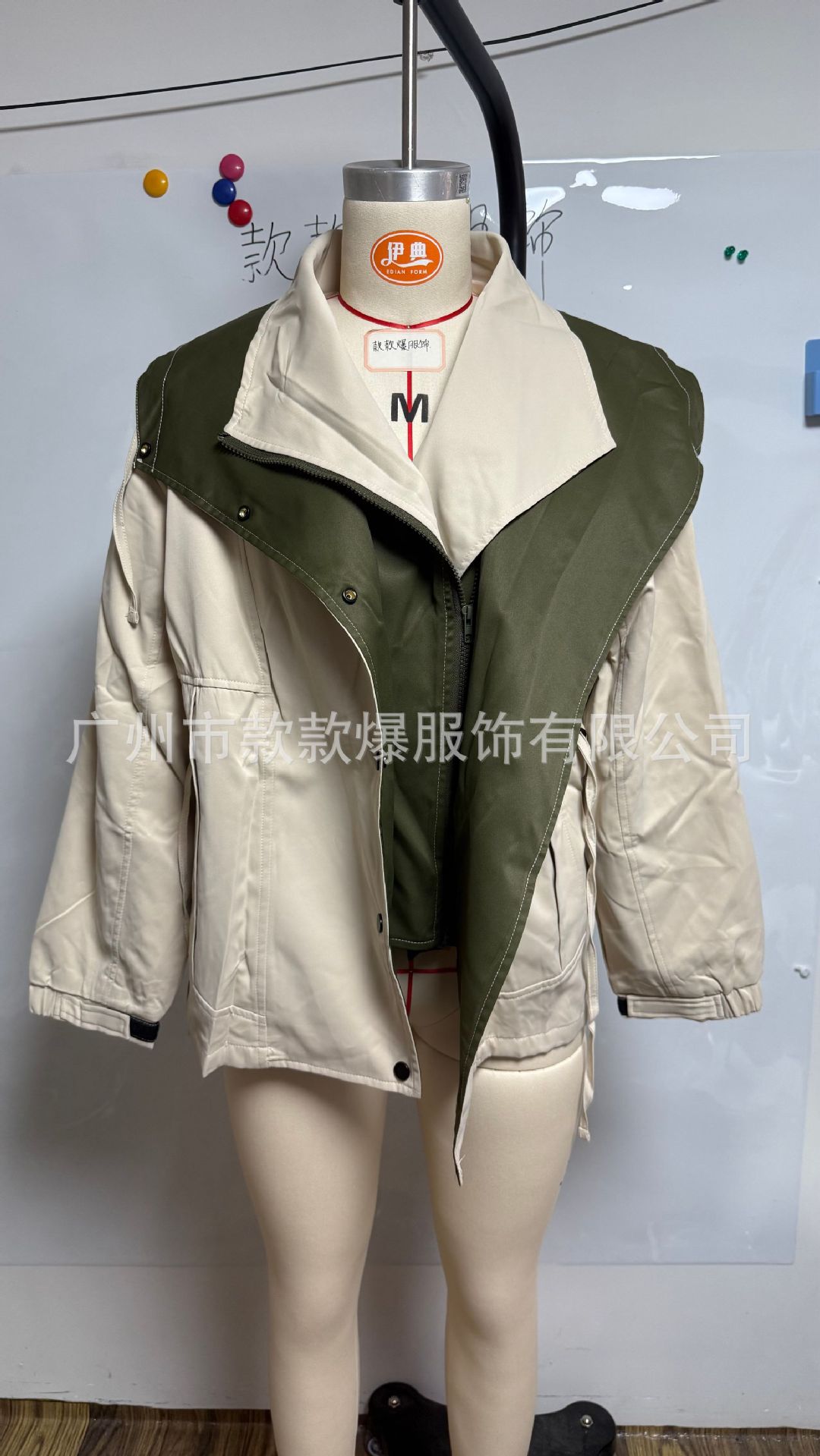 欧美女装2025秋季新款亚马逊跨境宽松翻领连帽拉链拼接风衣外套