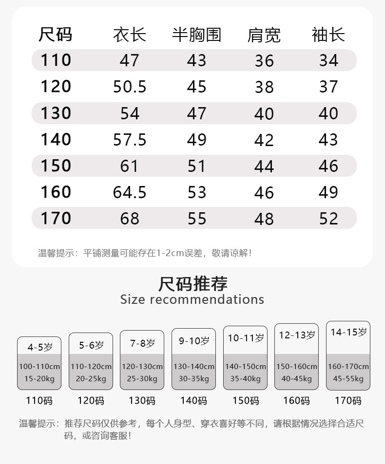110 см; 120 см; 130см; 140см; 150 см; 160см; 170см