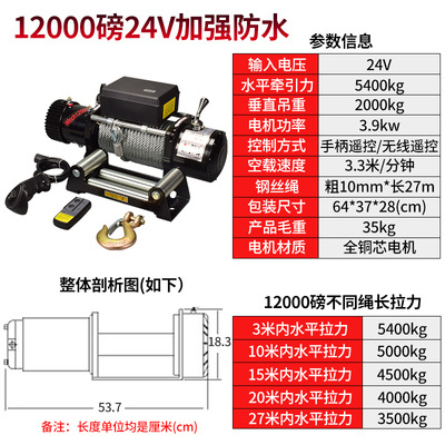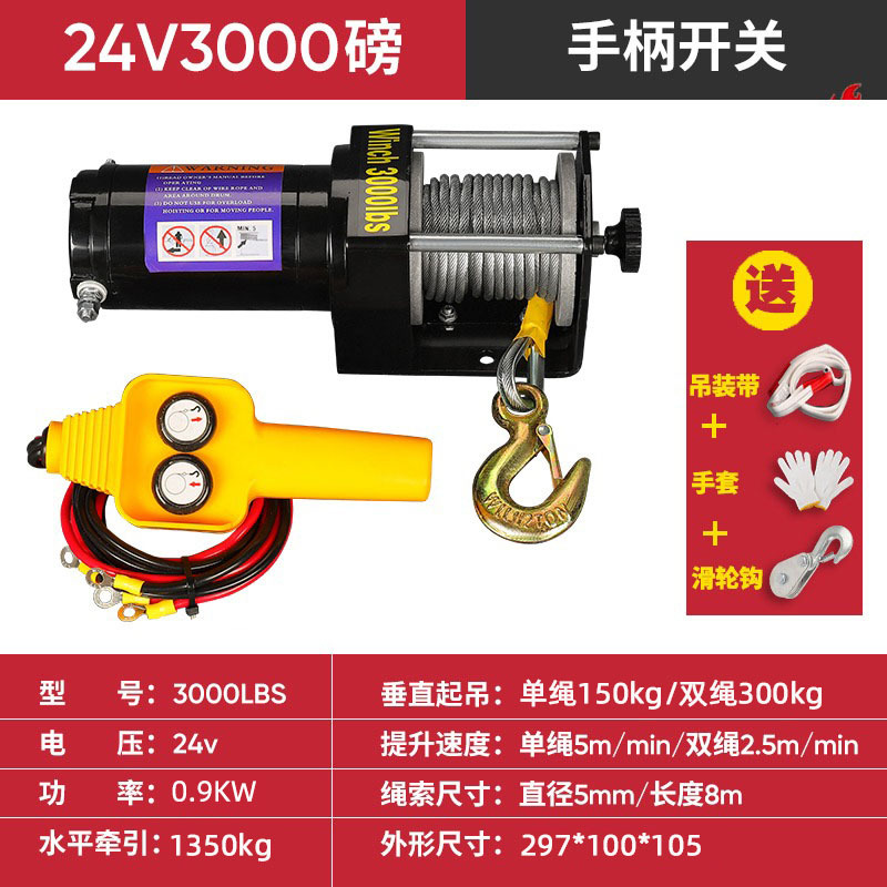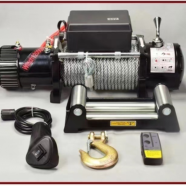 Электрическая лебедка 12В для трансграничной спасательной помощи, автомобильная лебедка 24В, лебедка для прицепов, тросовая лебедка, электрическая лебедка