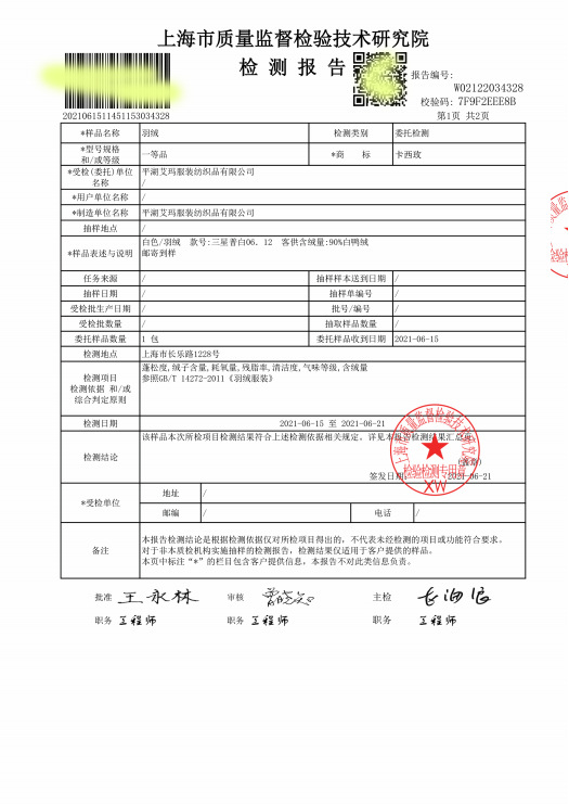 质检报告也全部是上海专业机构检测(第二张图)
