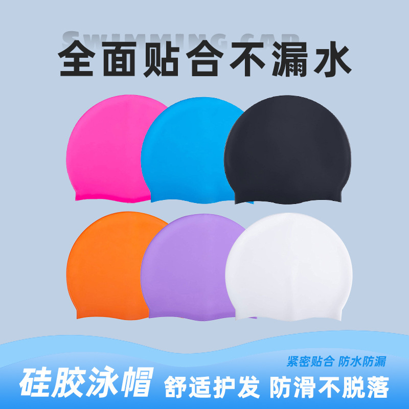 Оптовая продажа комфортных необтягивающих однотонных шапочек для плавания для детей и взрослых с длинными волосами, унисекс силиконовая шапочка для плавания