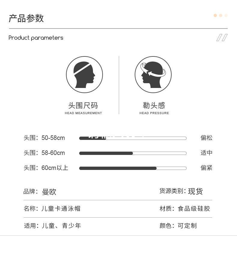 定制舒适不勒头 黑色潜水游泳帽男女款长发 可爱儿童卡通硅胶泳帽