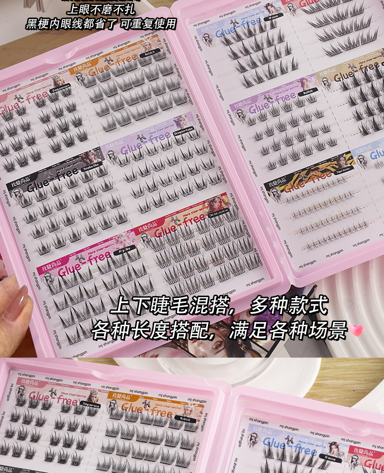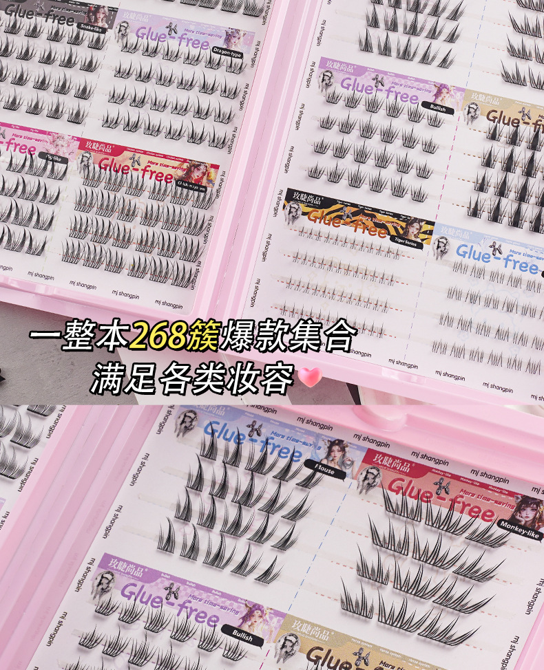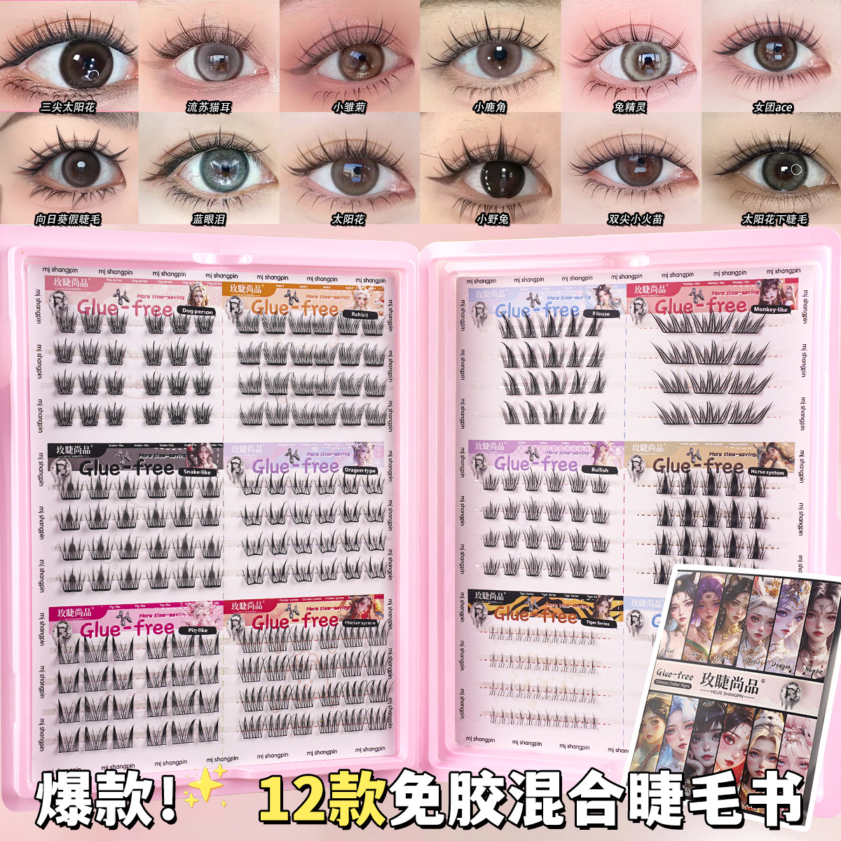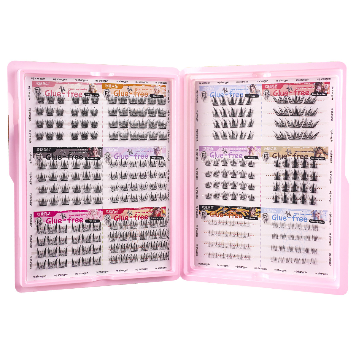 Розовые ресницы Премиум Зодиак Большая емкость Накладные ресницы без клея Одиночный кластер Натуральные густые ленивые ресницы Ресницы без клея
