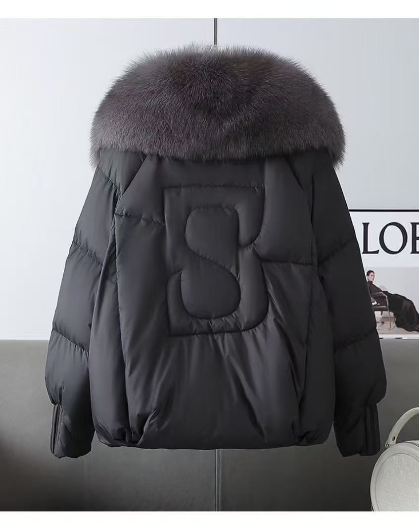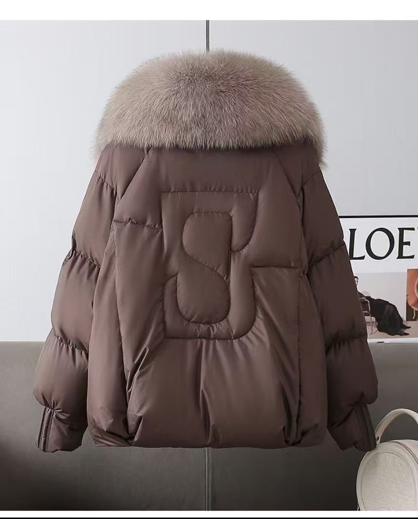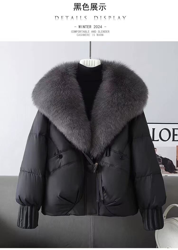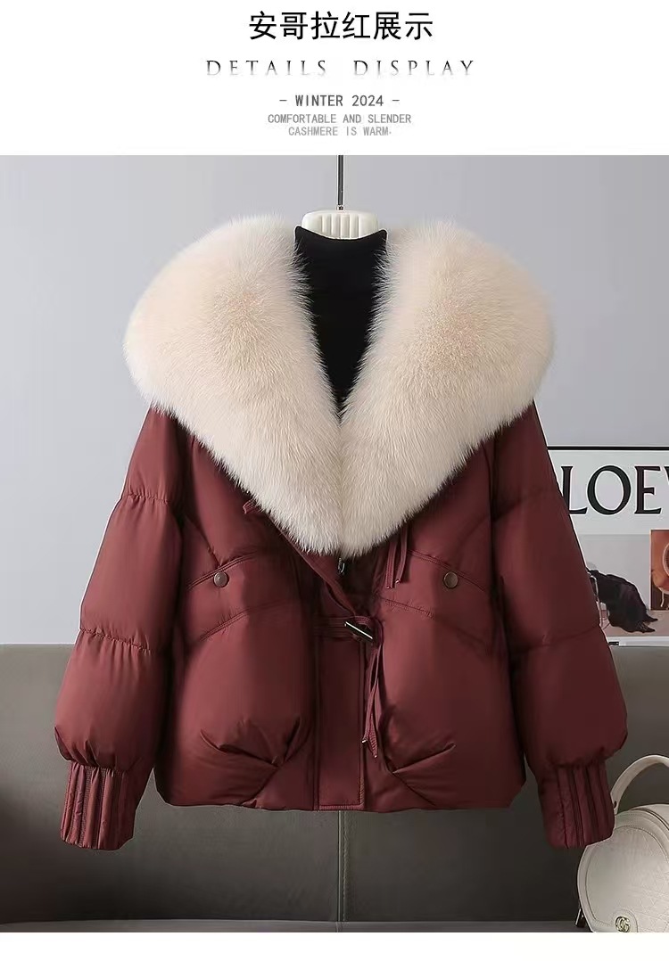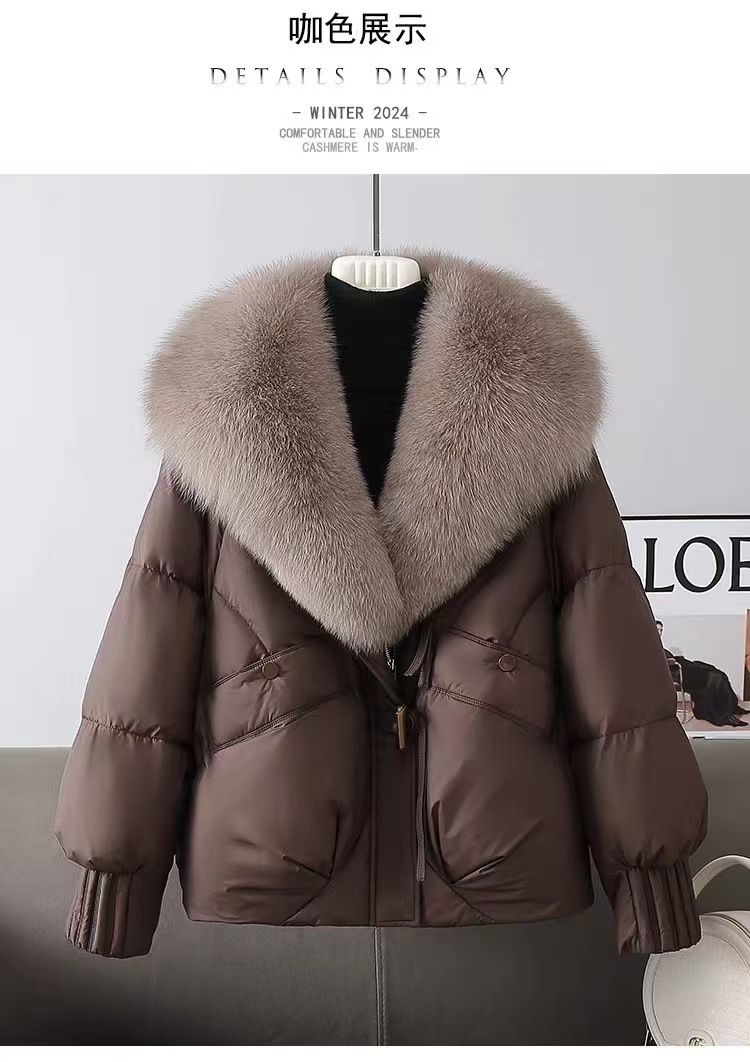 2025年冬季新款大毛领短款时尚棉衣高档气质棉袄宽松跨境棉服外套