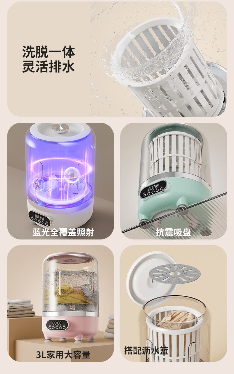 2025免安装迷你内衣洗衣机洗袜子内裤一体机小型无线便携充电甩干