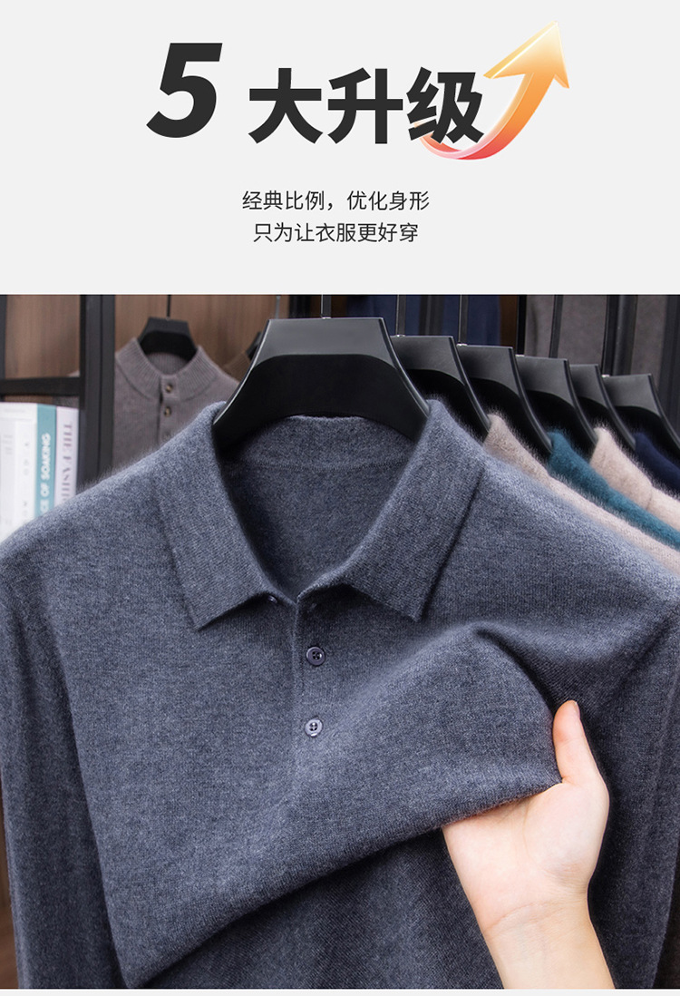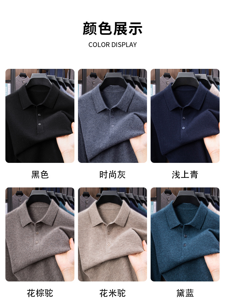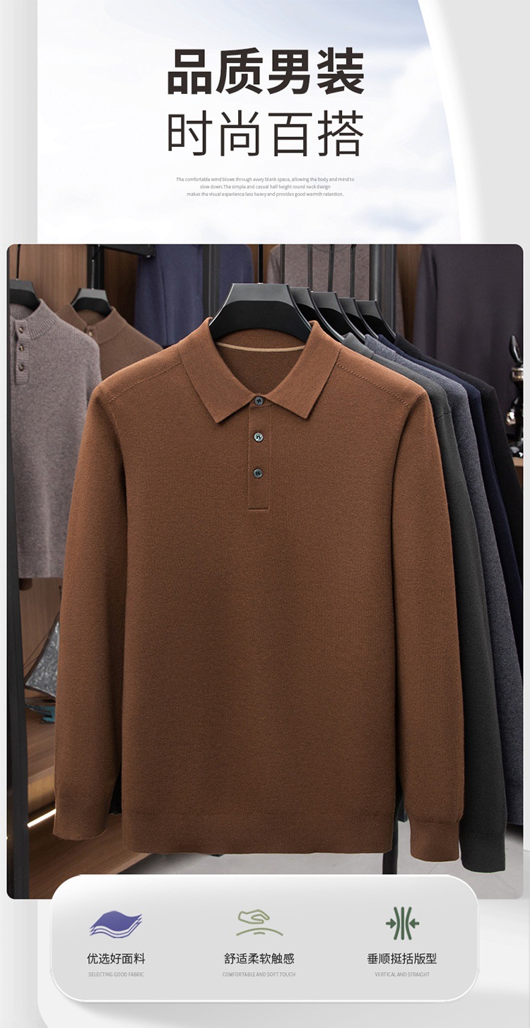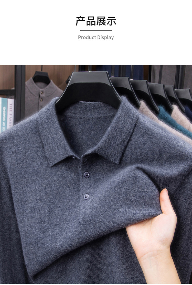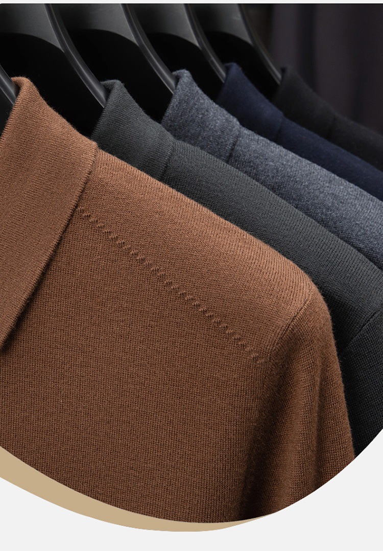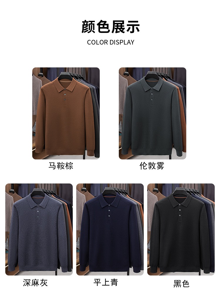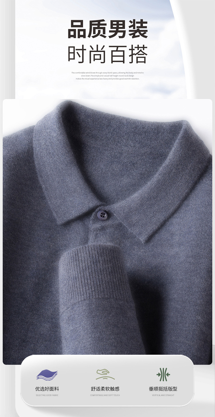抗起球羊毛100%加厚羊毛衫通勤翻领纯色保暖高档毛衣男爸爸装内搭