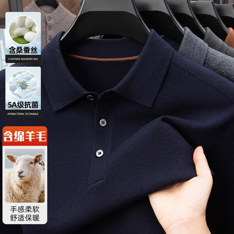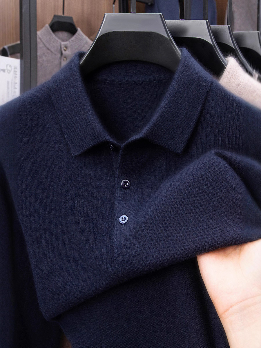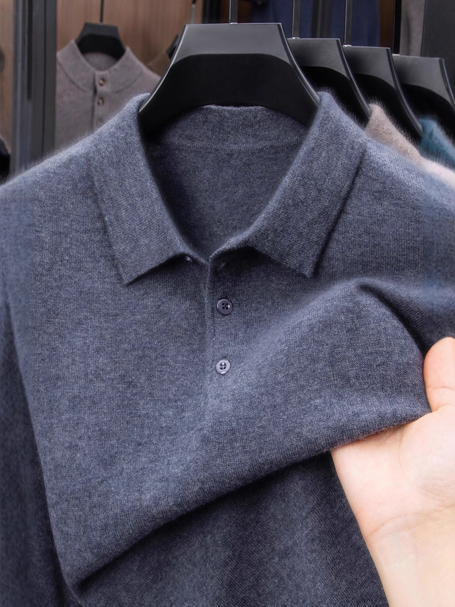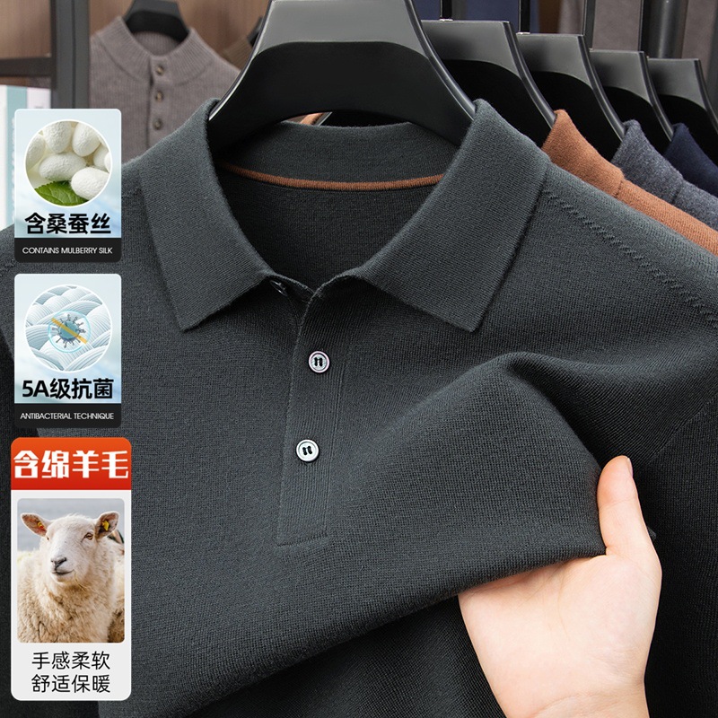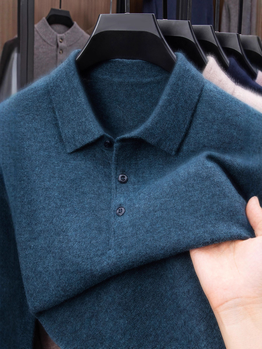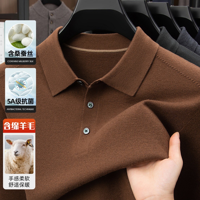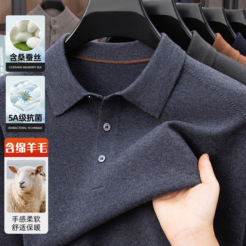 抗起球羊毛100%加厚羊毛衫通勤翻领纯色保暖高档毛衣男爸爸装内搭