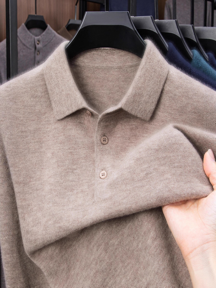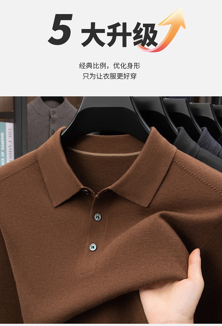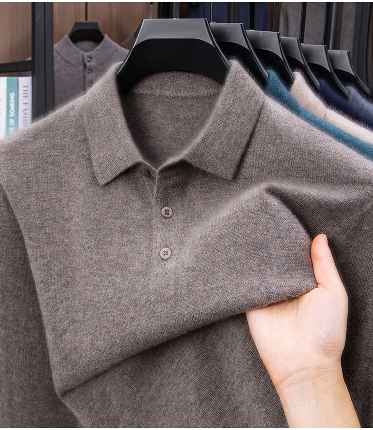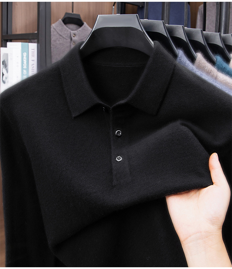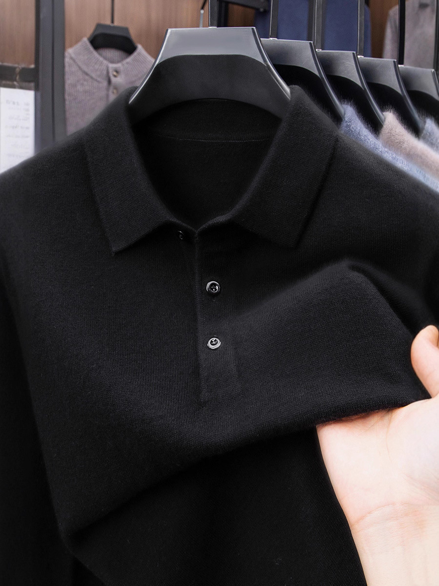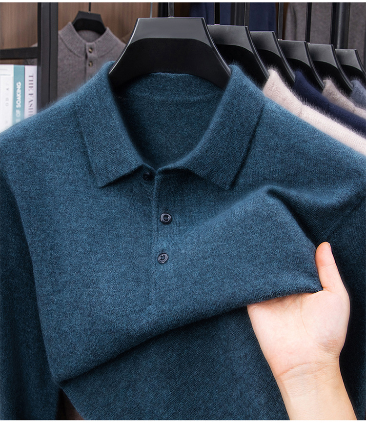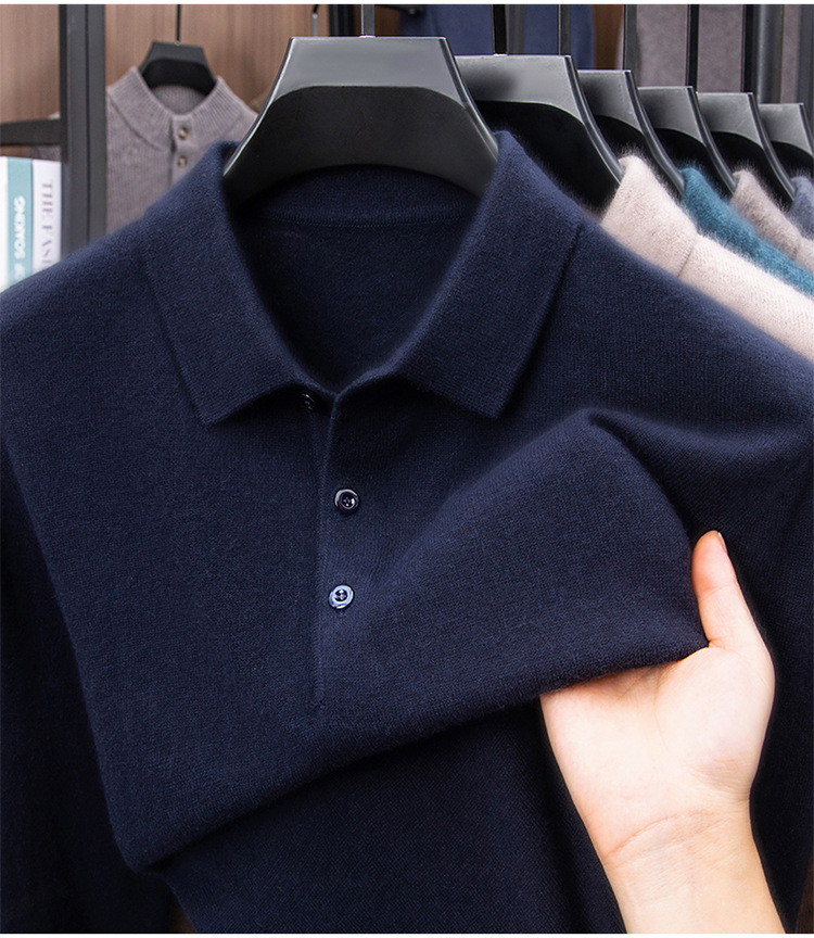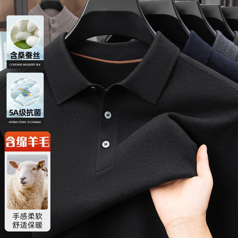 抗起球羊毛100%加厚羊毛衫通勤翻领纯色保暖高档毛衣男爸爸装内搭