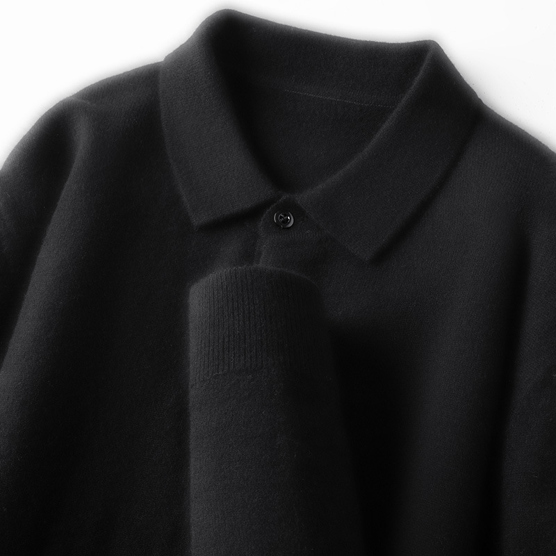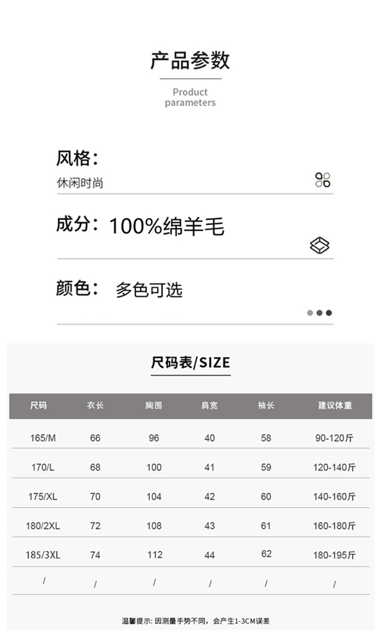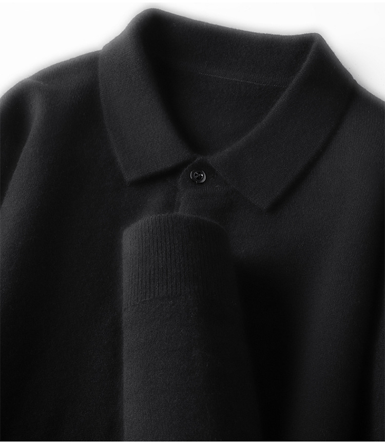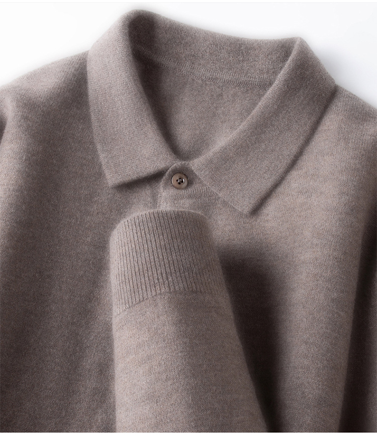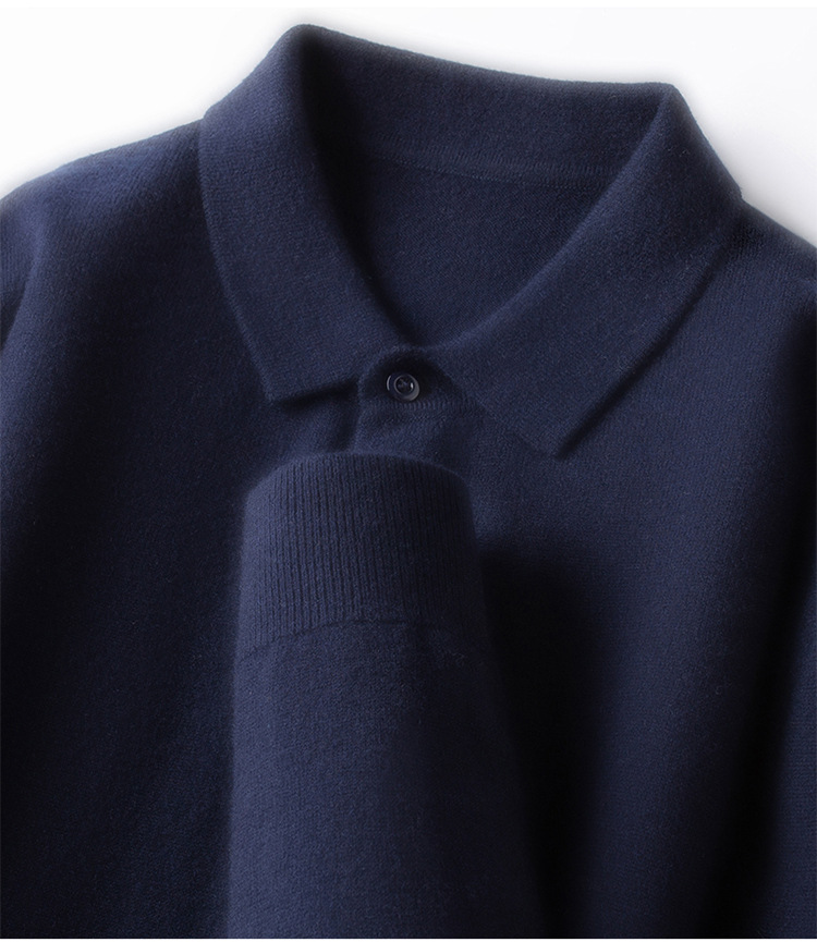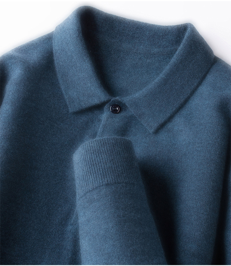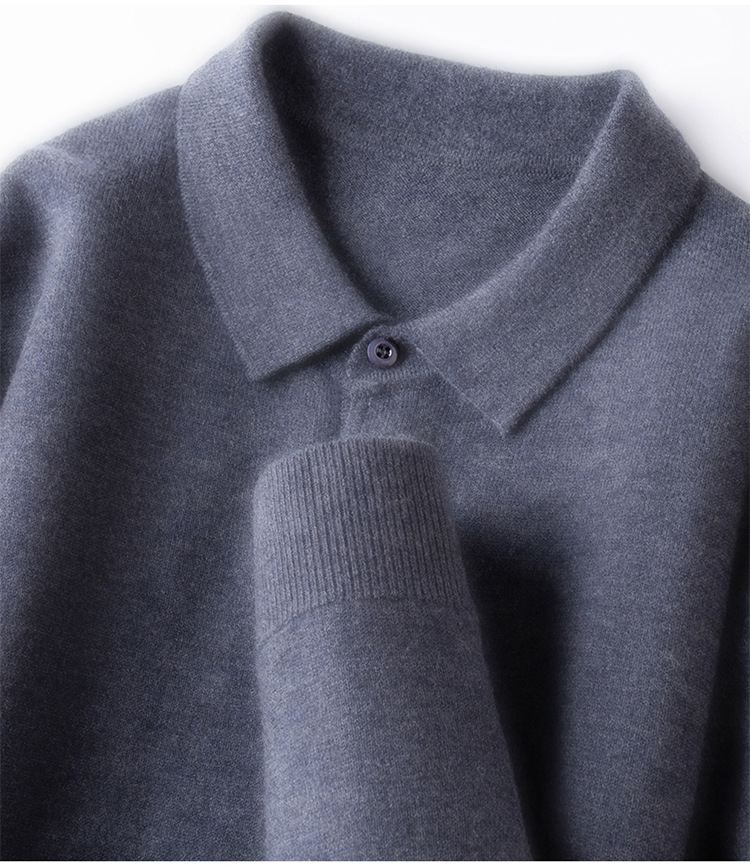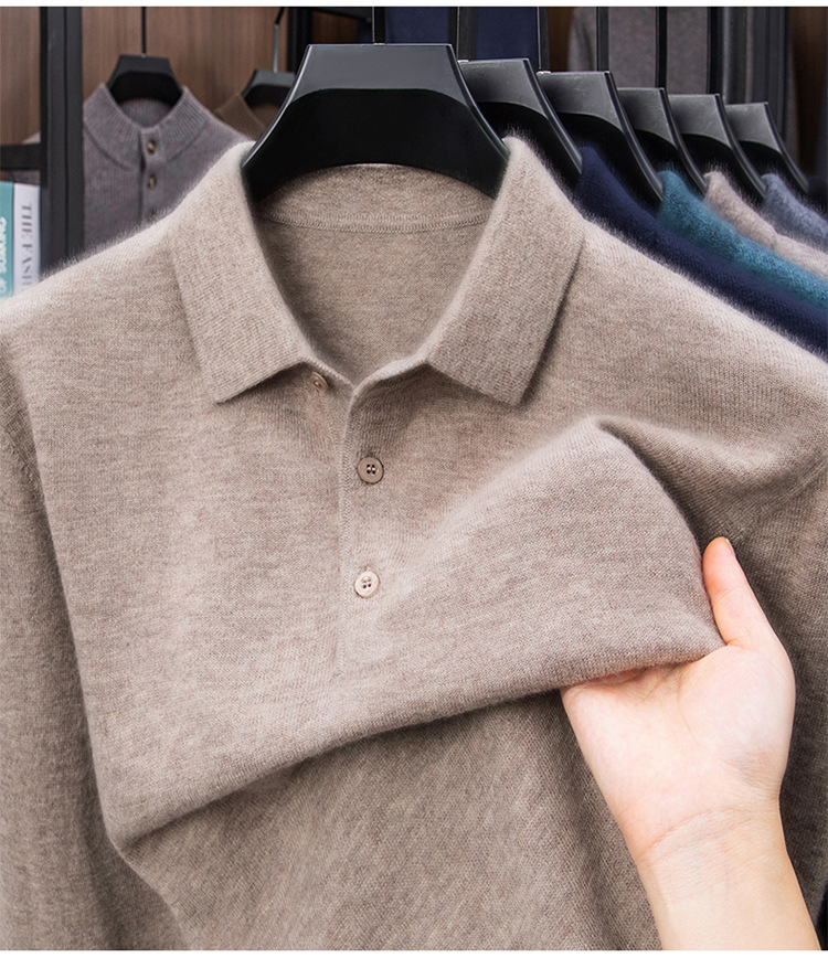 抗起球羊毛100%加厚羊毛衫通勤翻领纯色保暖高档毛衣男爸爸装内搭