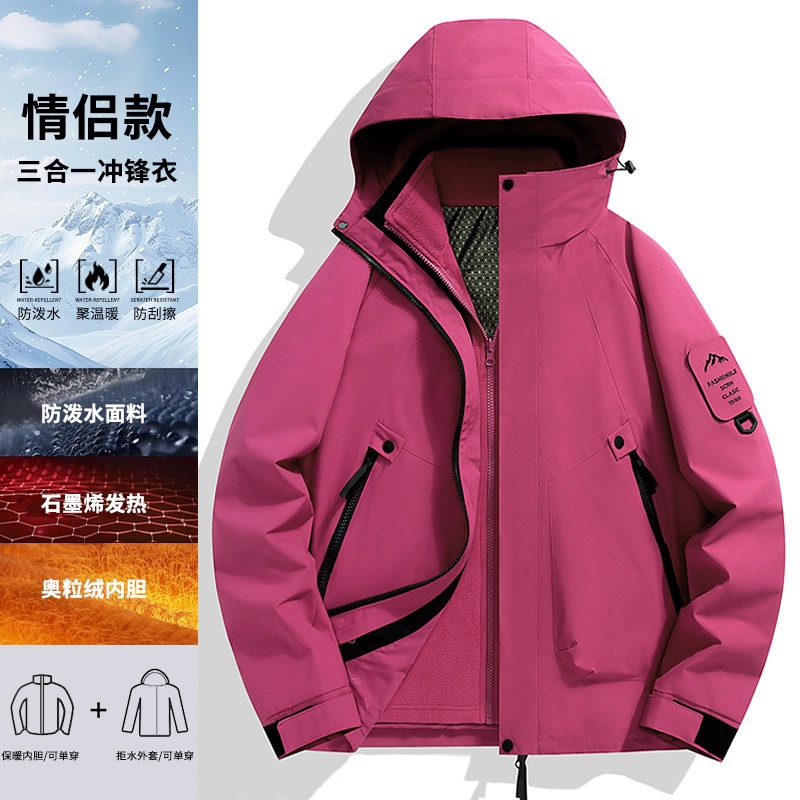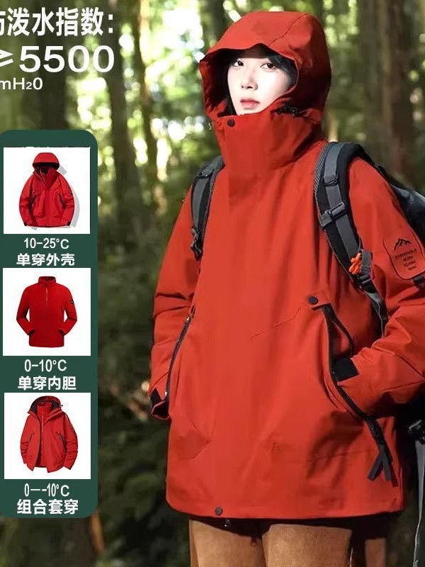 Уличная красная куртка Suzaku, женская мужская куртка «три в одном», весенне-осенний туристический альпинистский костюм, ветрозащитная и водонепроницаемая куртка большого размера