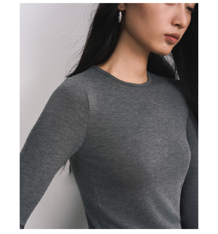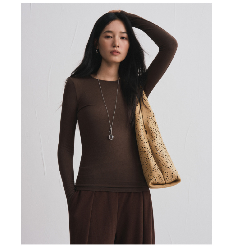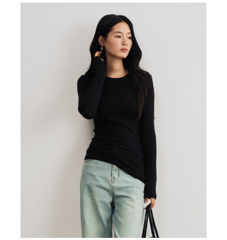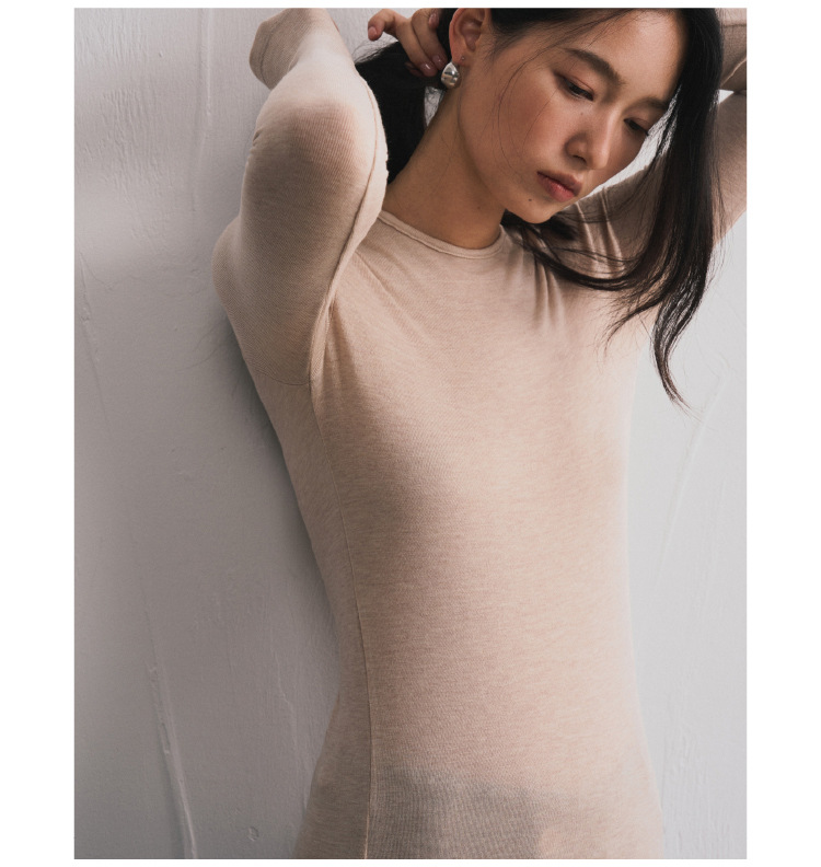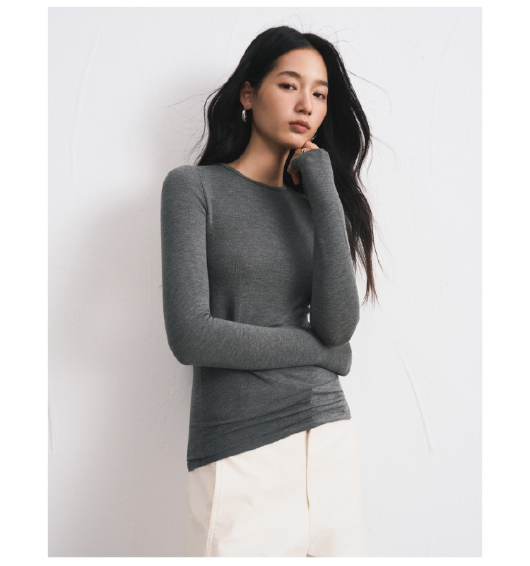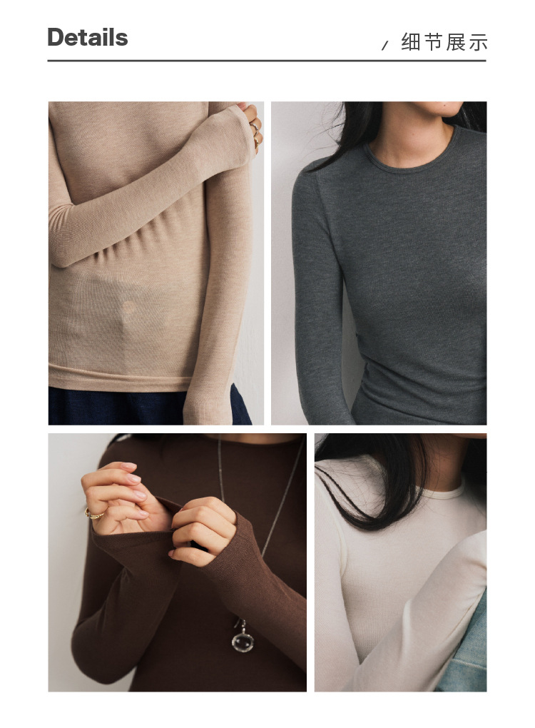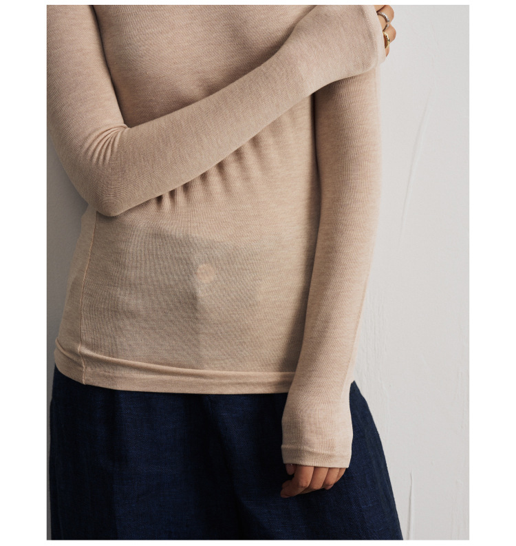 天丝莫代尔山羊绒打底衫女秋冬修身纯色亲肤T恤高级感轻奢针织衫