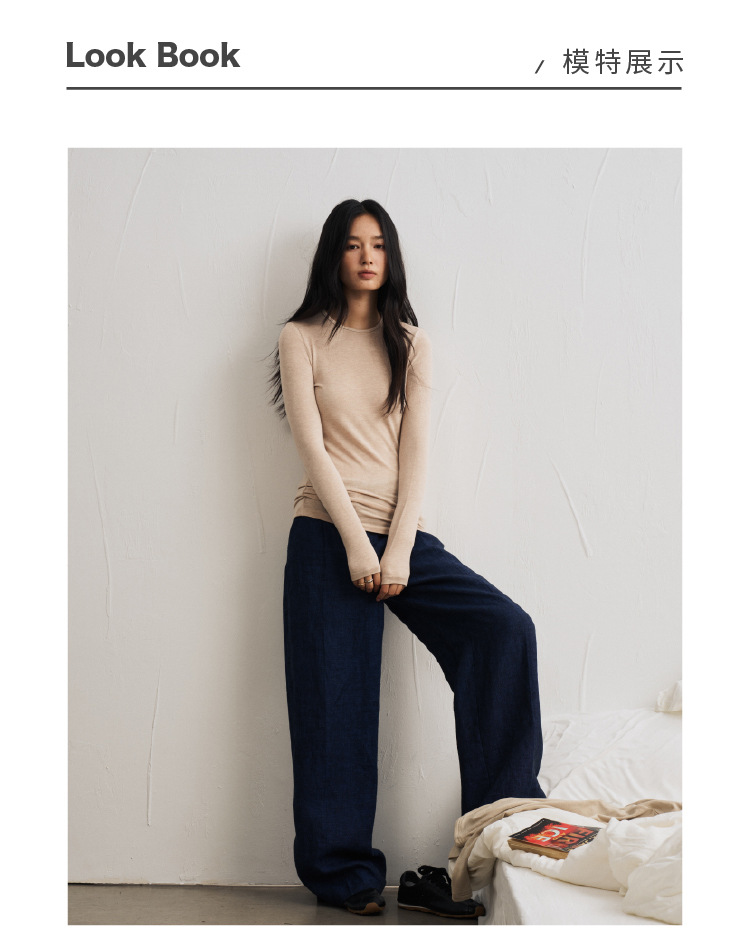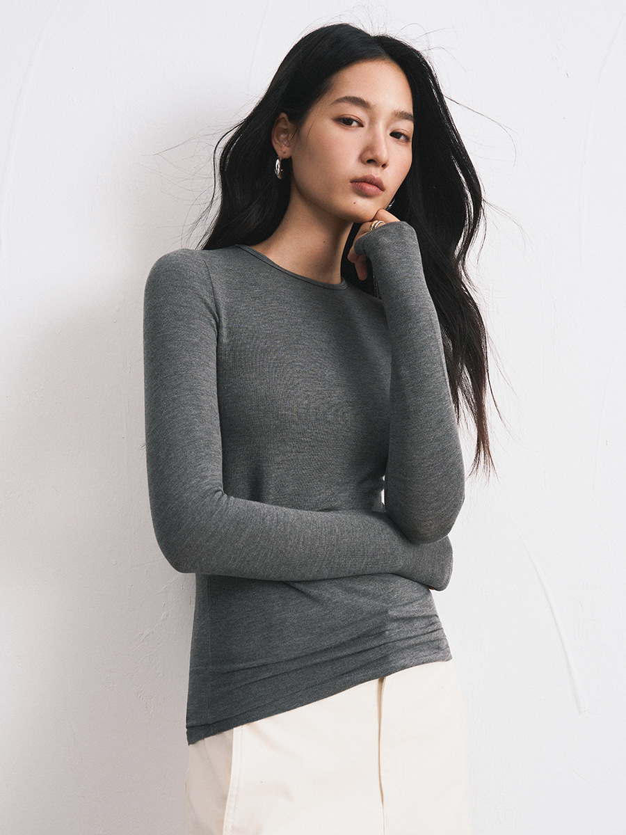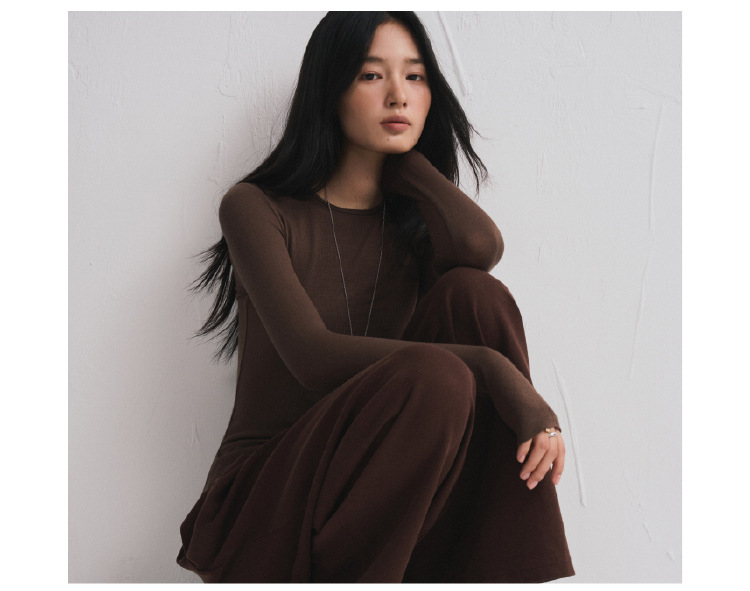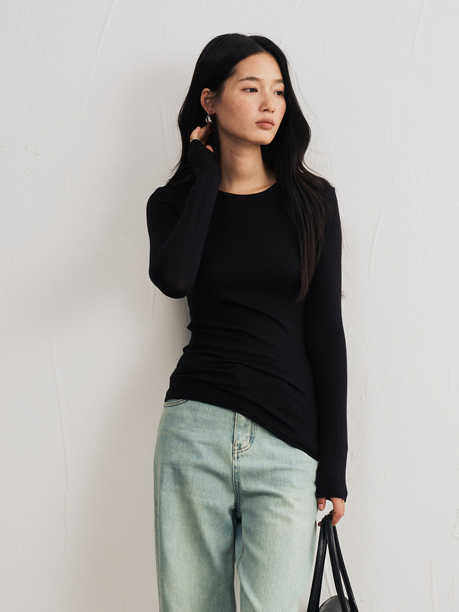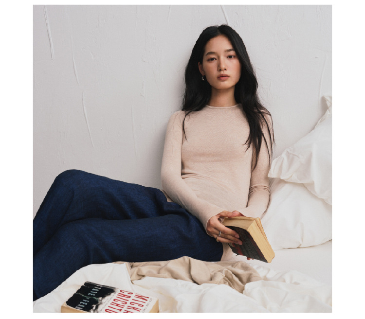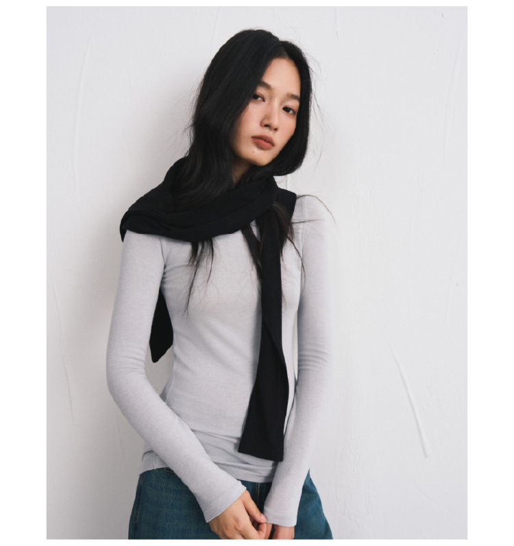 天丝莫代尔山羊绒打底衫女秋冬修身纯色亲肤T恤高级感轻奢针织衫
