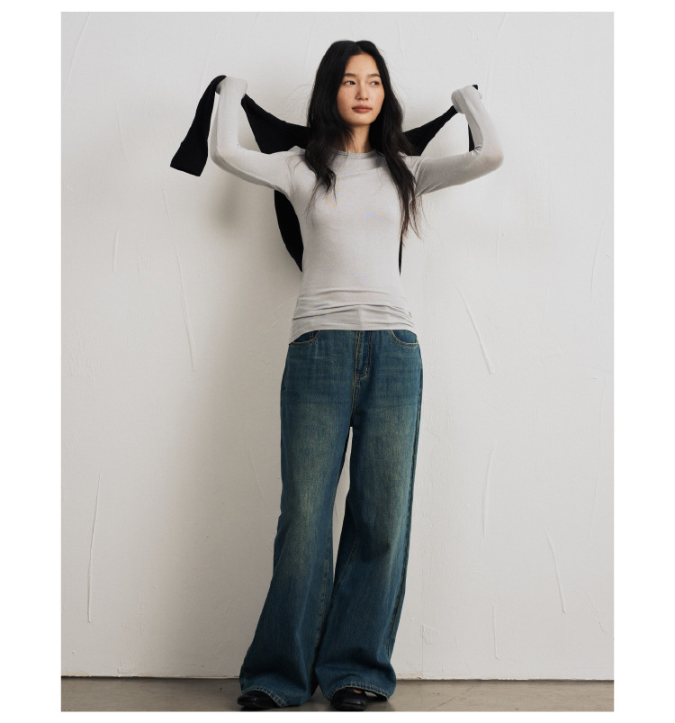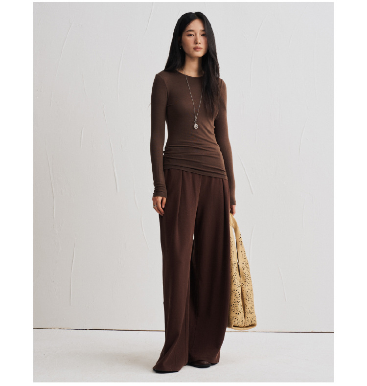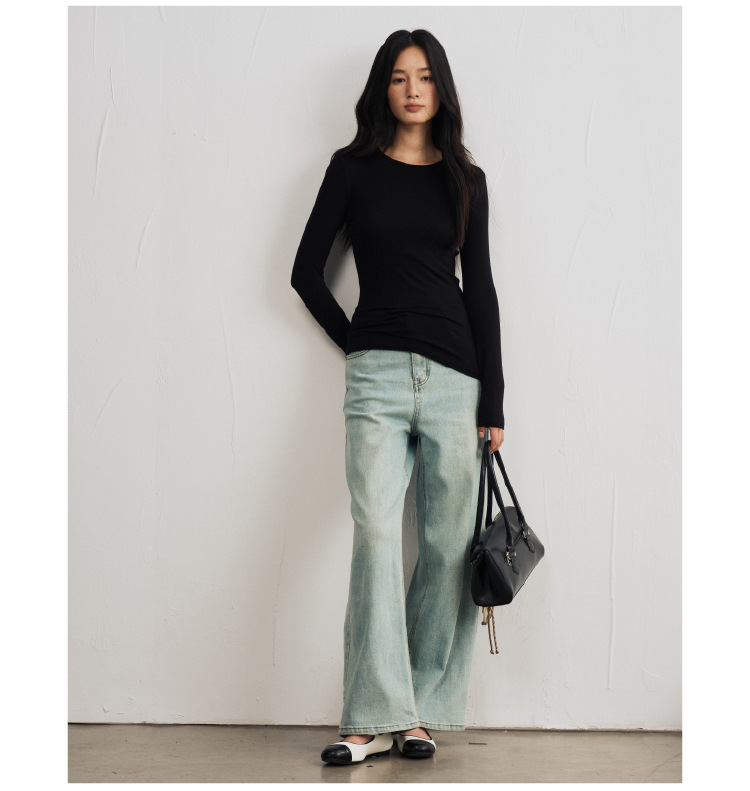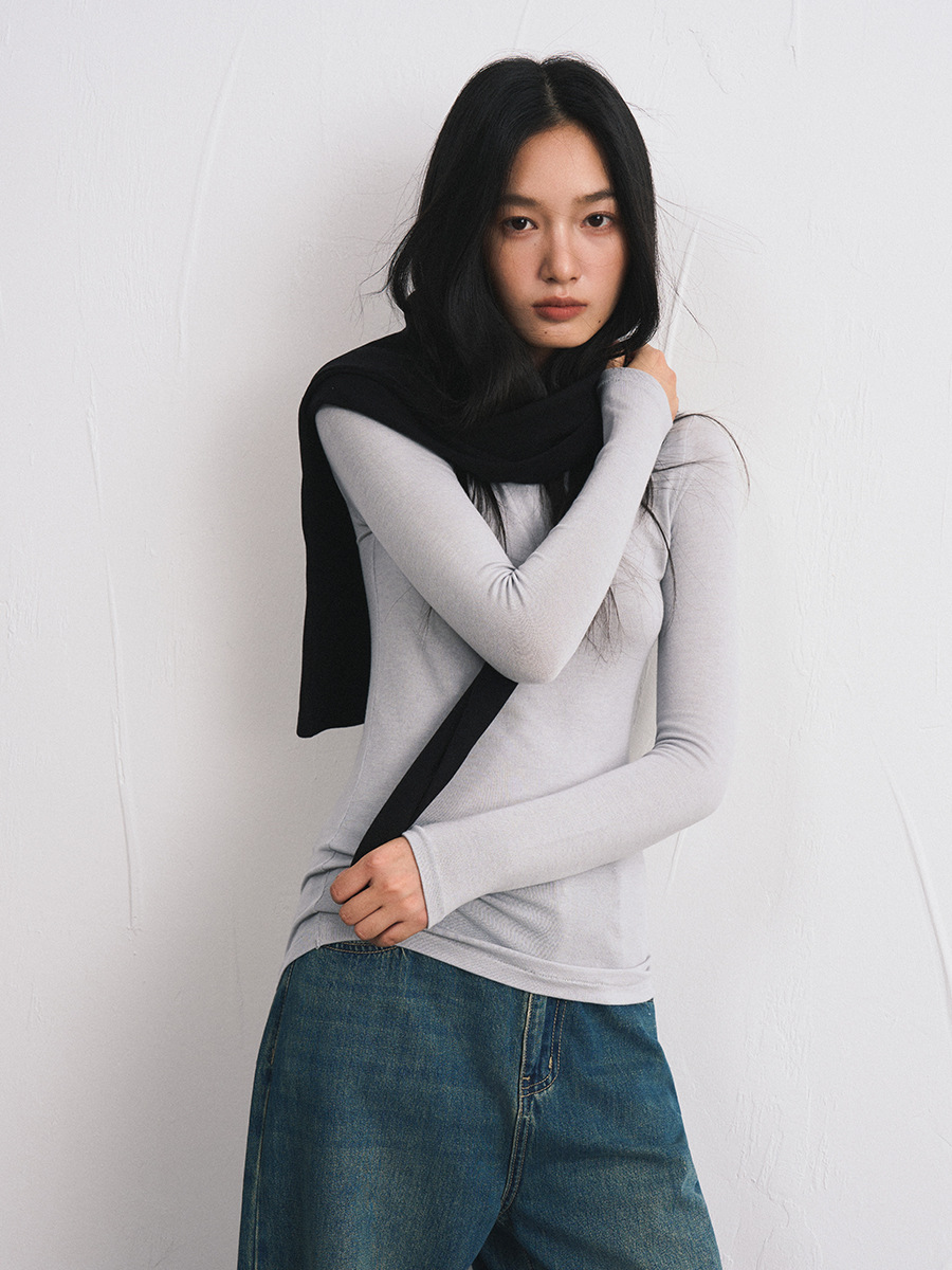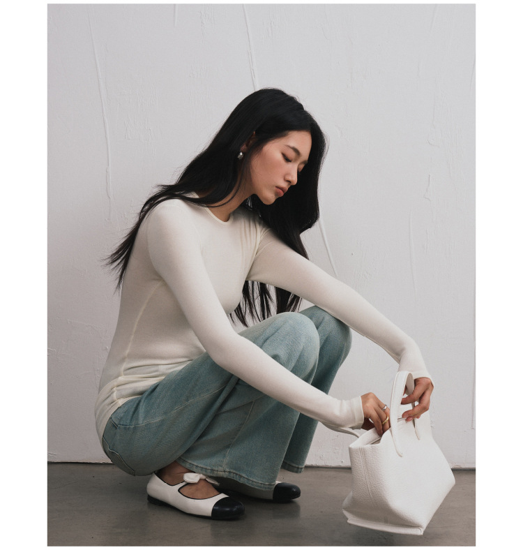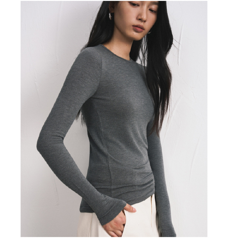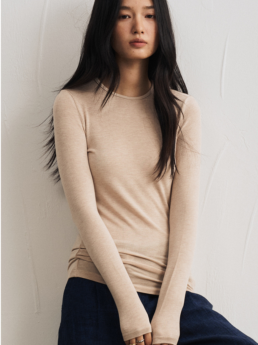 天丝莫代尔山羊绒打底衫女秋冬修身纯色亲肤T恤高级感轻奢针织衫