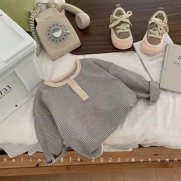 秋季新款儿童打底衫男童长袖T恤女童打底衣条纹上衣童装批发