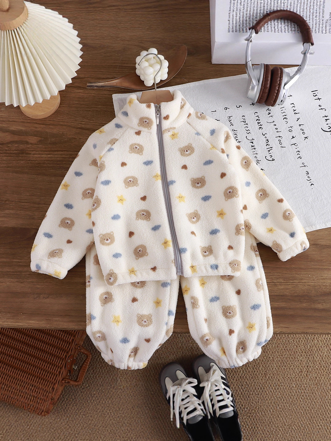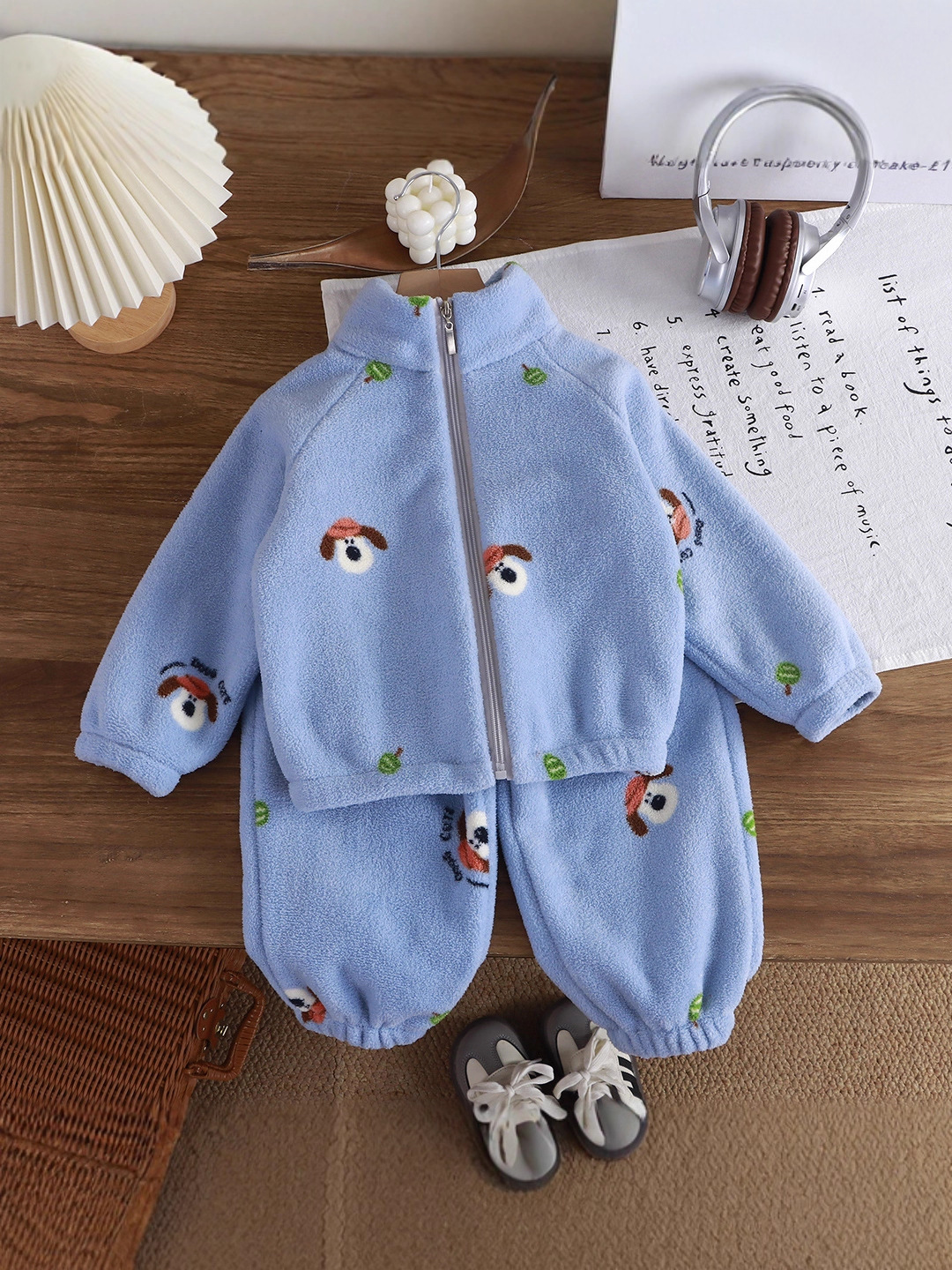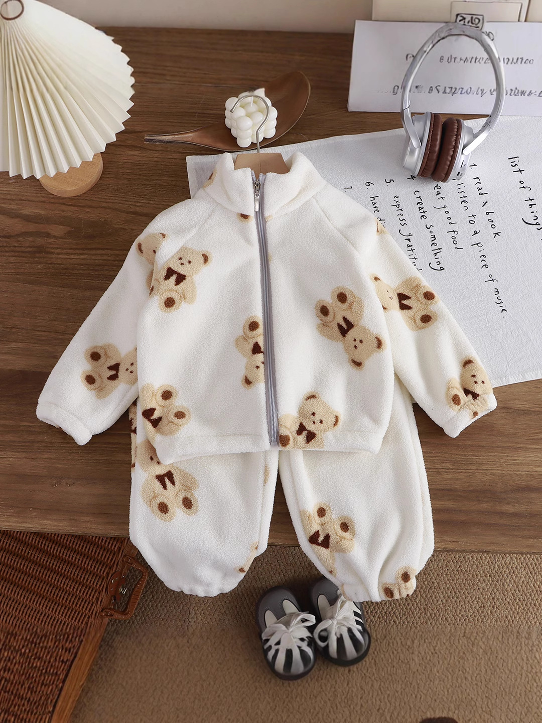 新款秋冬季加绒加厚套装韩版儿童家居服男女童保暖套装童装批发