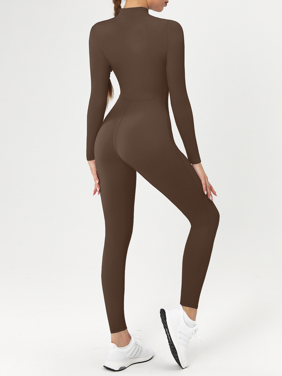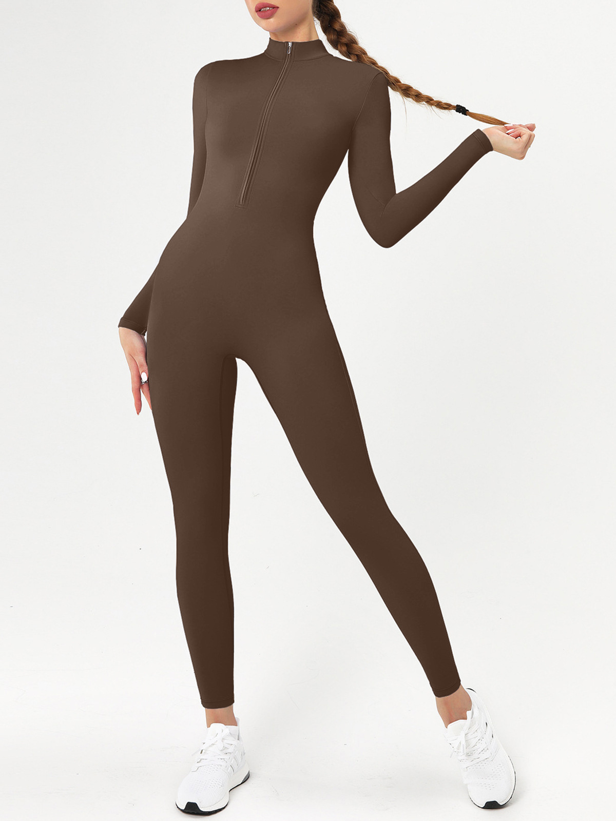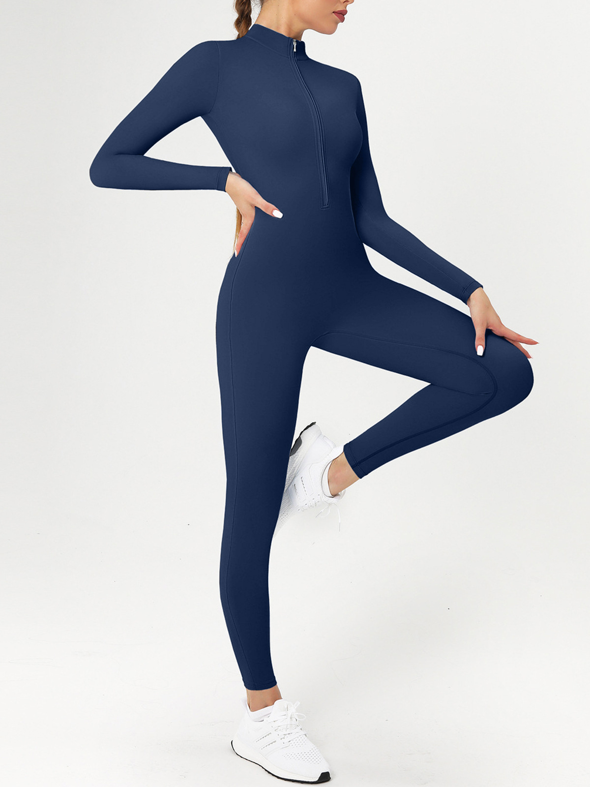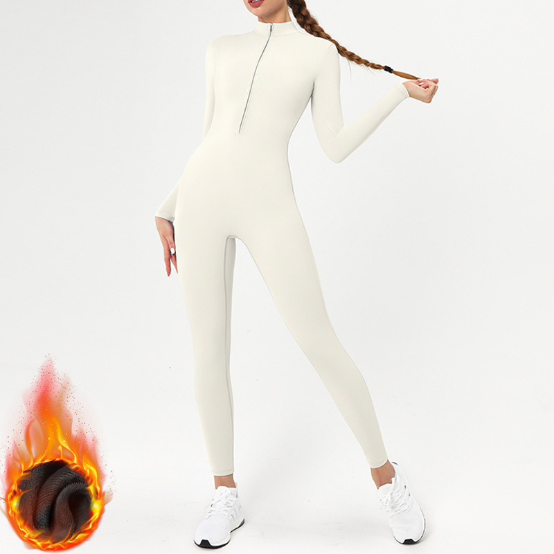 跨境裸感紧身加绒秋冬连体瑜伽服保暖连体衣跑步健身服8445