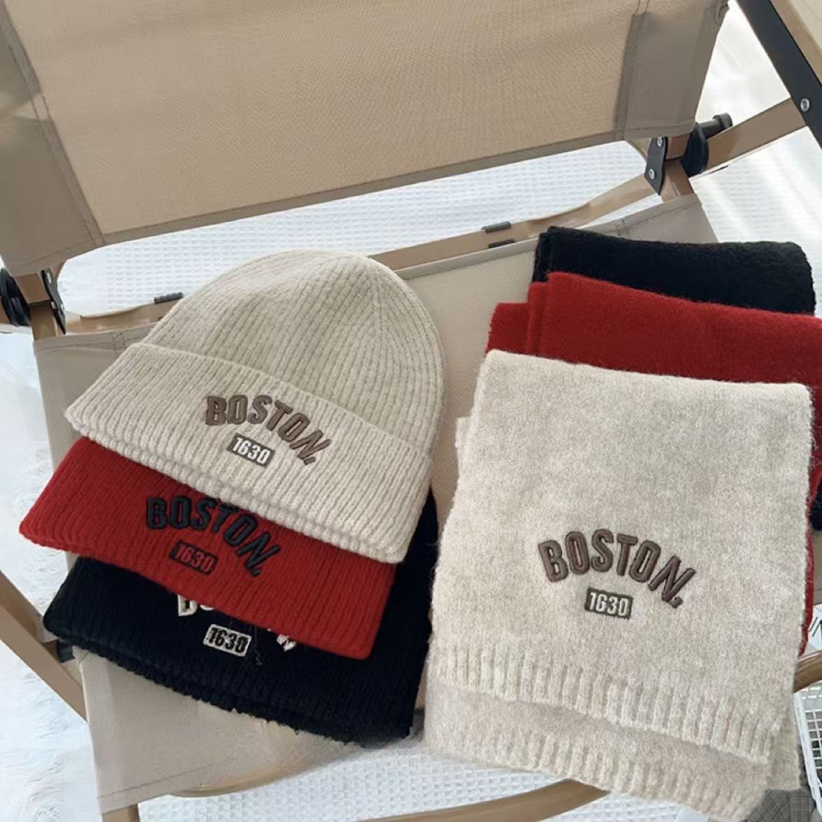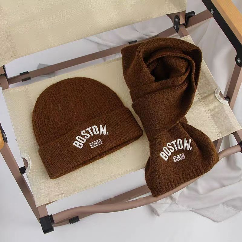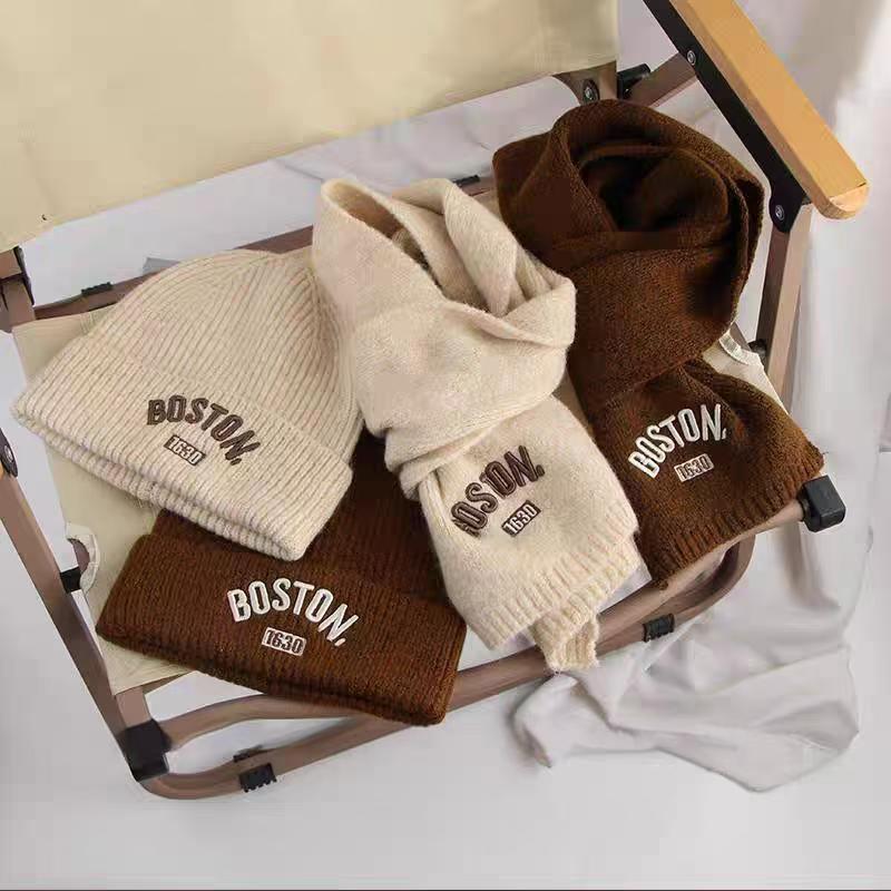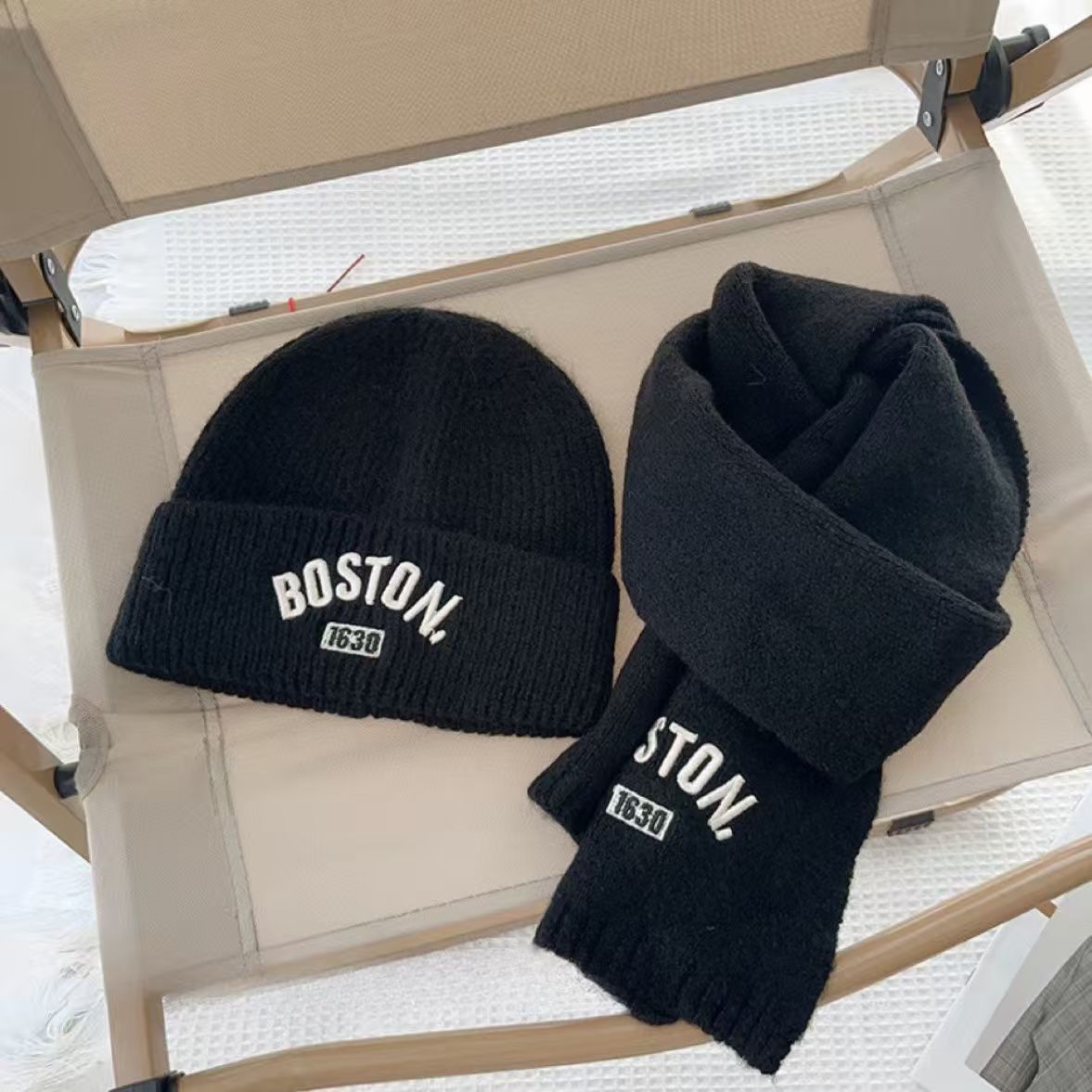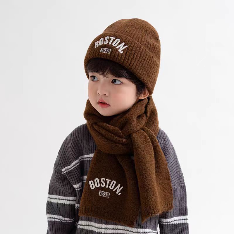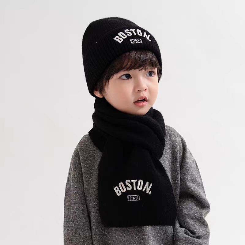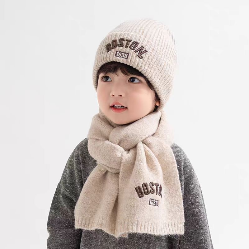 儿童针织帽子围巾两件套韩系秋冬个性宝宝毛线帽保暖字母刺绣围巾