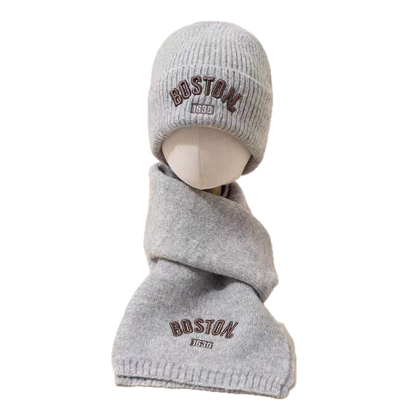 Детская вязаная шапка и шарф, комплект из двух предметов, корейская осенне-зимняя персонализированная детская шерстяная шапка, теплый шарф с вышивкой букв