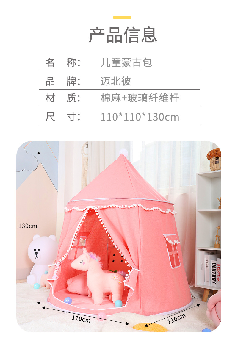 室内儿童帐篷游戏屋家用宝宝城堡小房子男女孩可折叠蒙古包玩具屋
