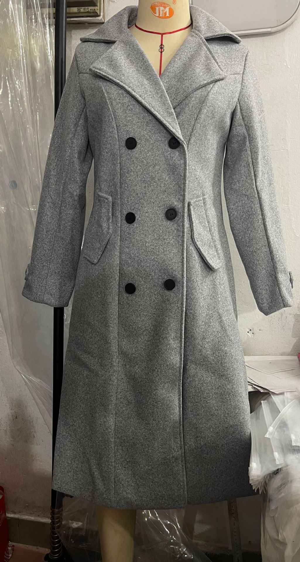 2025跨境爆款欧美时尚秋冬双排扣保暖毛呢外套大衣