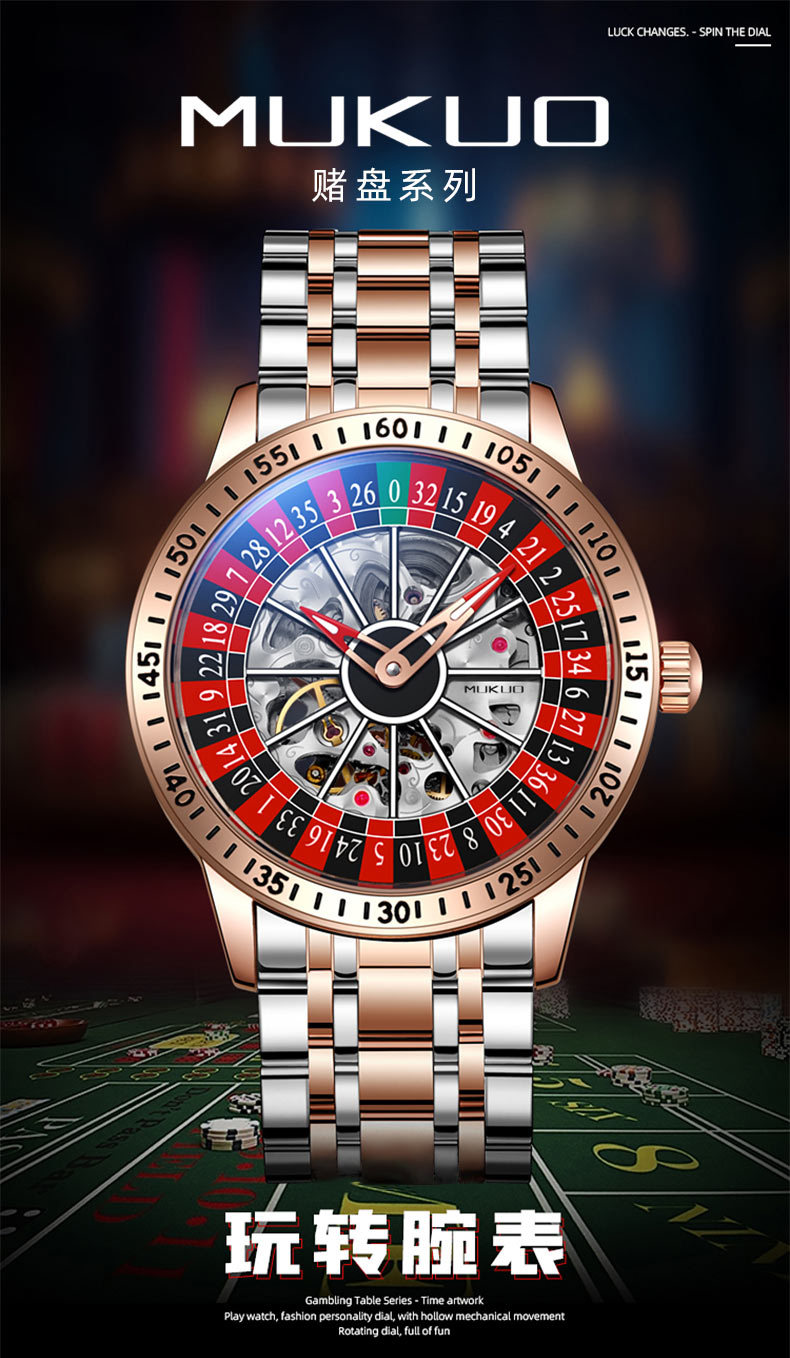 爆款外贸正品木阔赌盘男士全自动机械手表防水夜光时尚潮流腕表