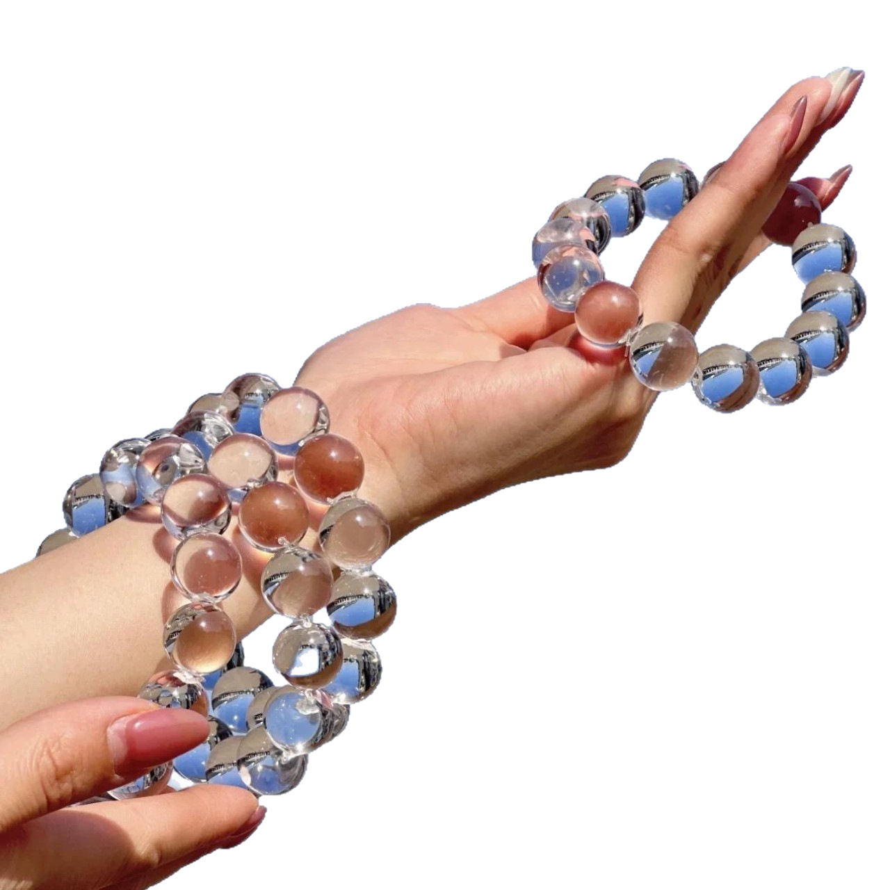 Браслет из натурального белого хрусталя класса АА, браслет из бусин в форме пузырьков, парный браслет, чистый браслет, подарок для мужчин и женщин, оптом
