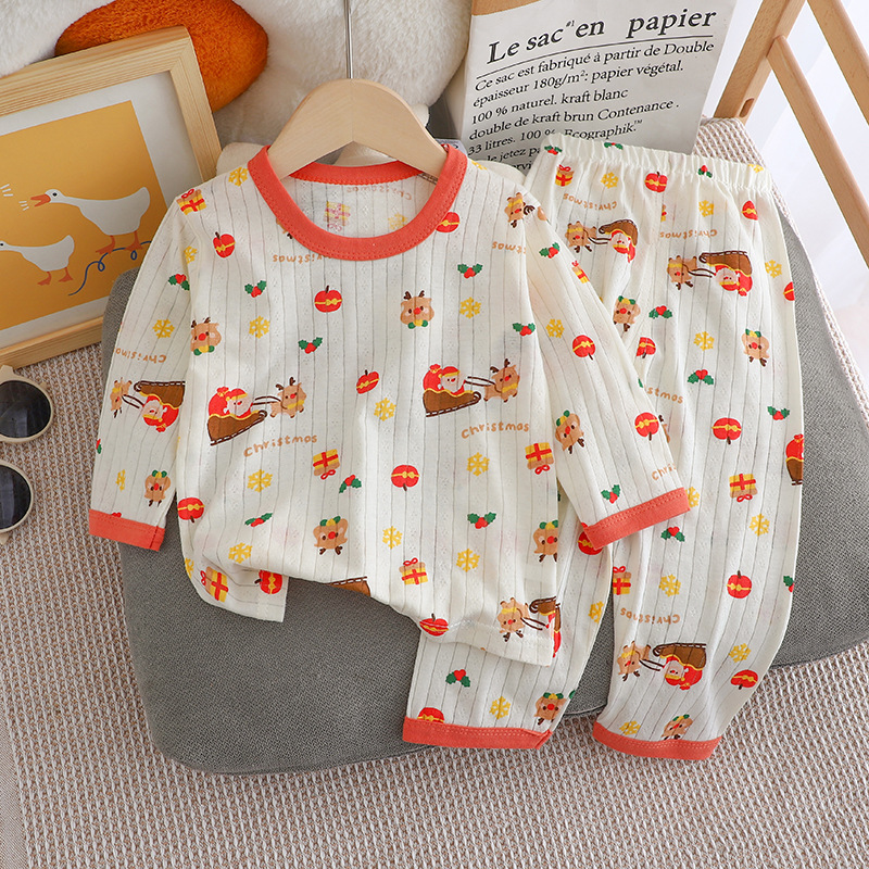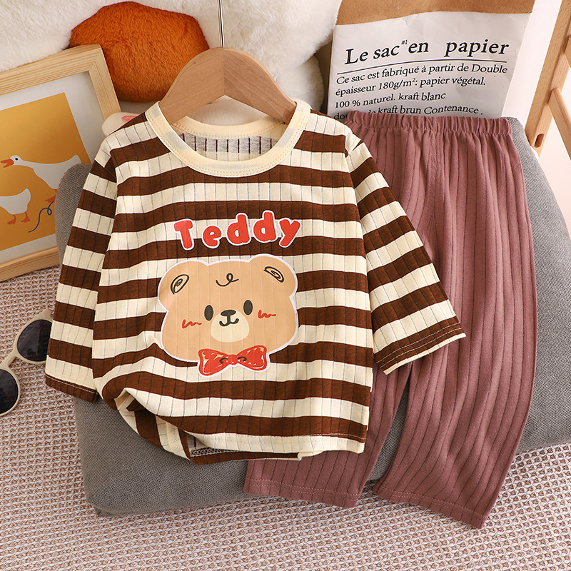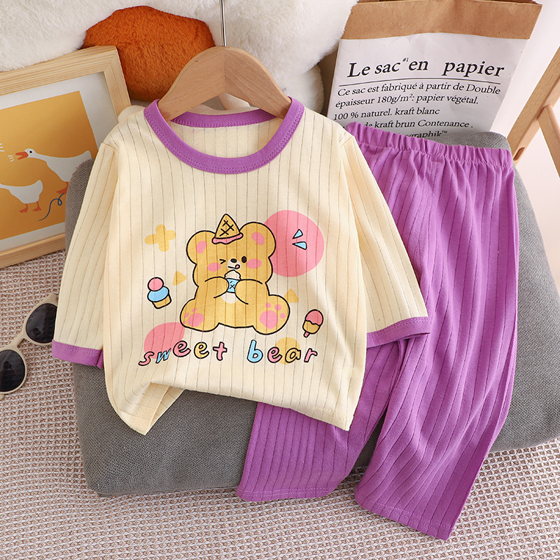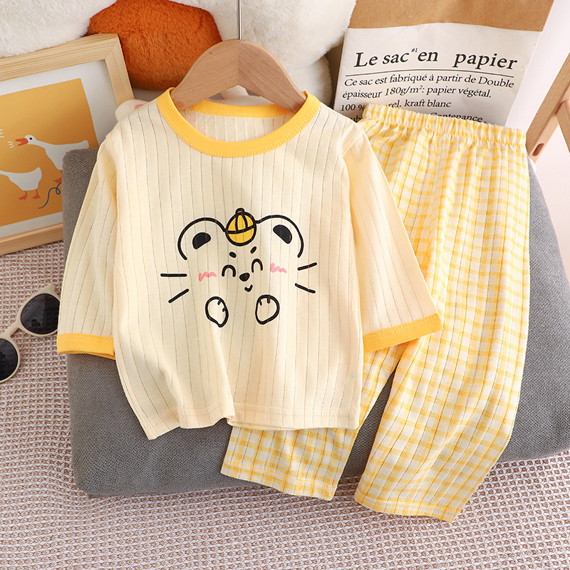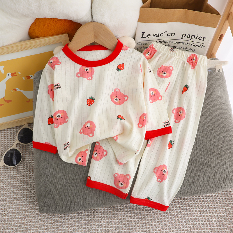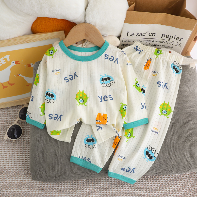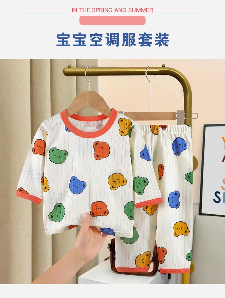 夏季儿童长袖长裤家居服套装全棉内衣宝宝薄款睡衣睡裤空调服