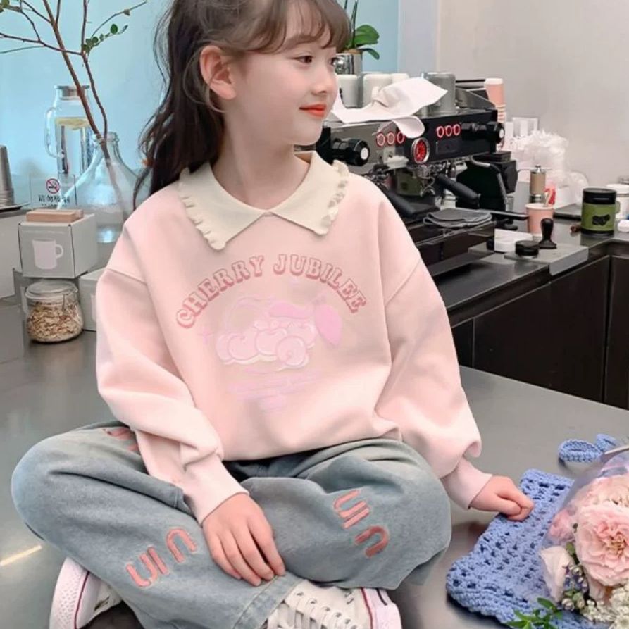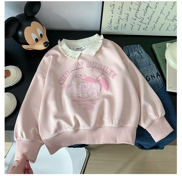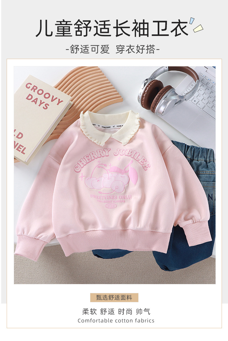 女童秋季卫衣2025新款花边童装女孩中大童polo领上衣批发新款2025