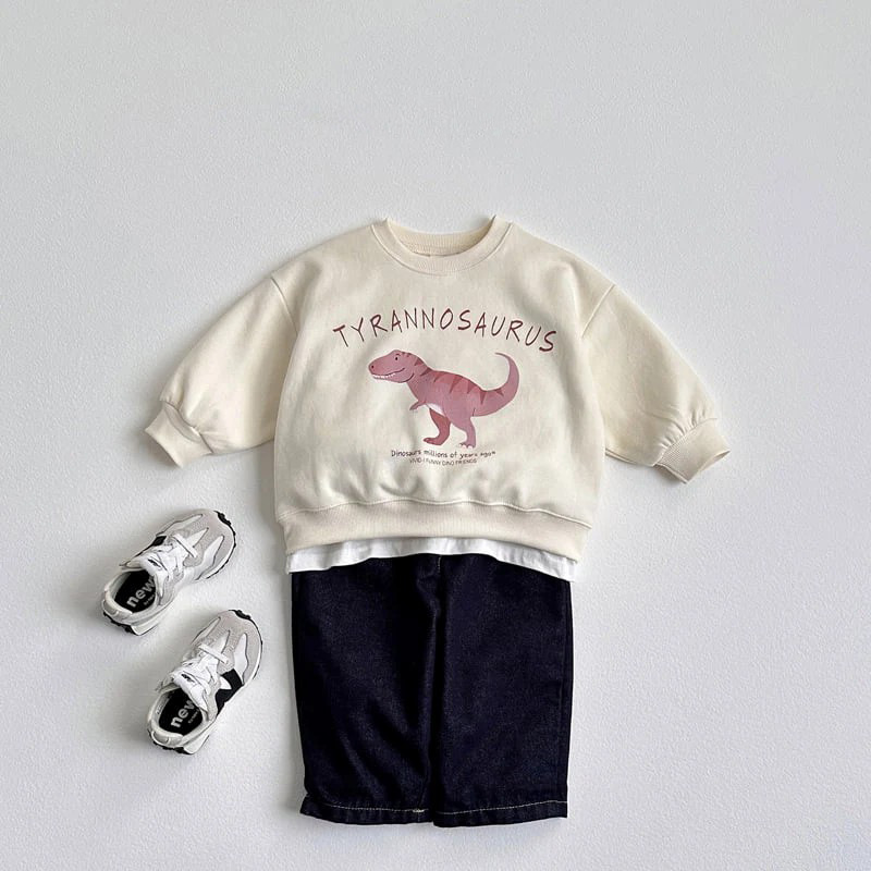 Детский свитшот с корейским мультяшным динозавром, новинка осени 2025 года, повседневный пуловер для мальчиков и девочек
