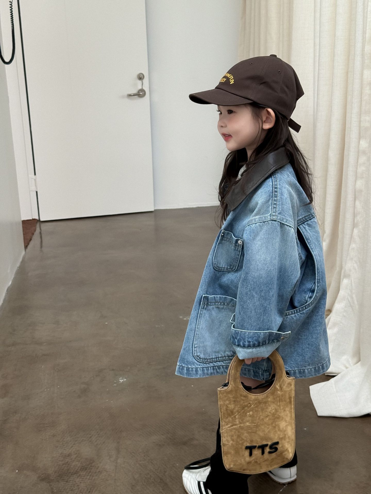 2025 новая осенняя детская одежда в корейском стиле, модная одежда для девочек, трендовая джинсовая рубашка средней длины, джинсовая куртка