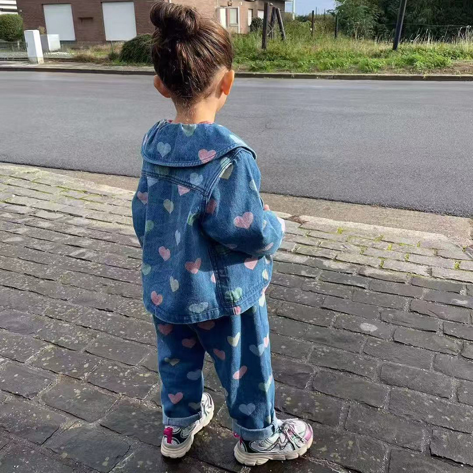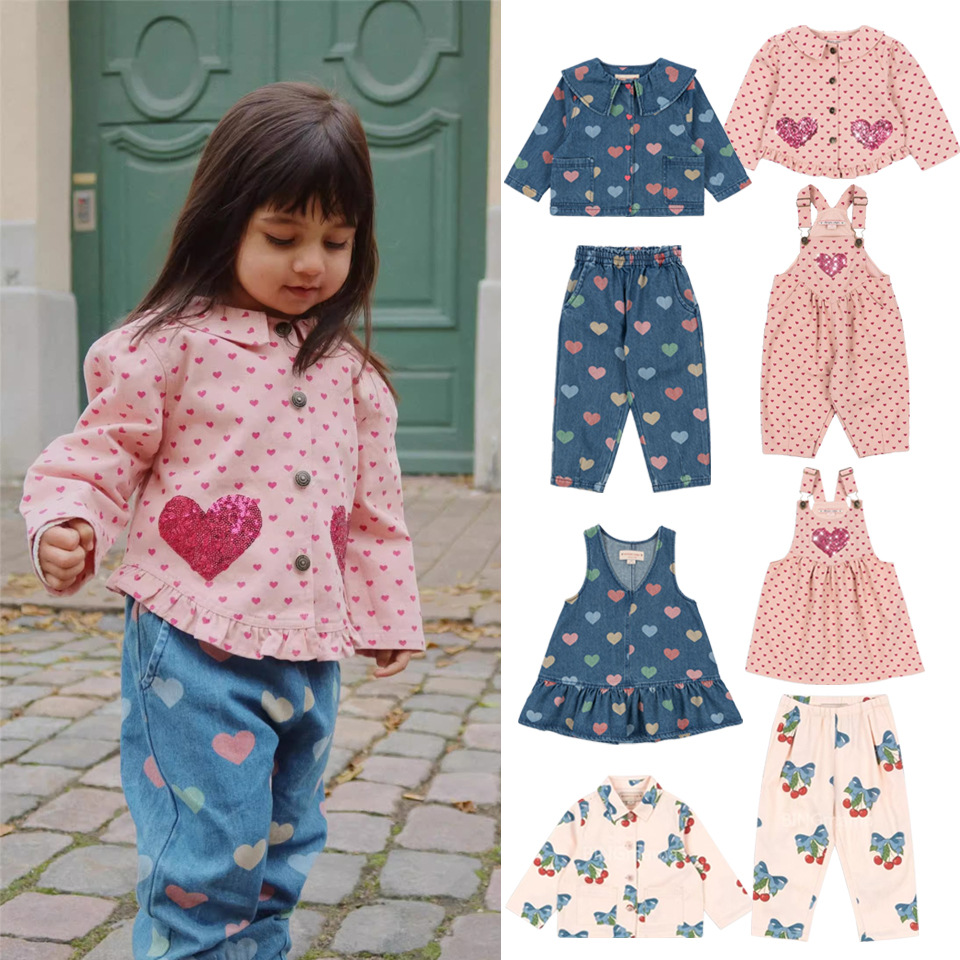 В наличии 25 новых детских комплектов одежды осень-зима в стиле KS: джинсовый костюм с сердечками, куртка, длинные брюки, жилет с пайетками, юбка, комбинезон.