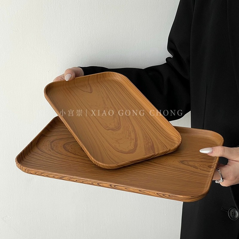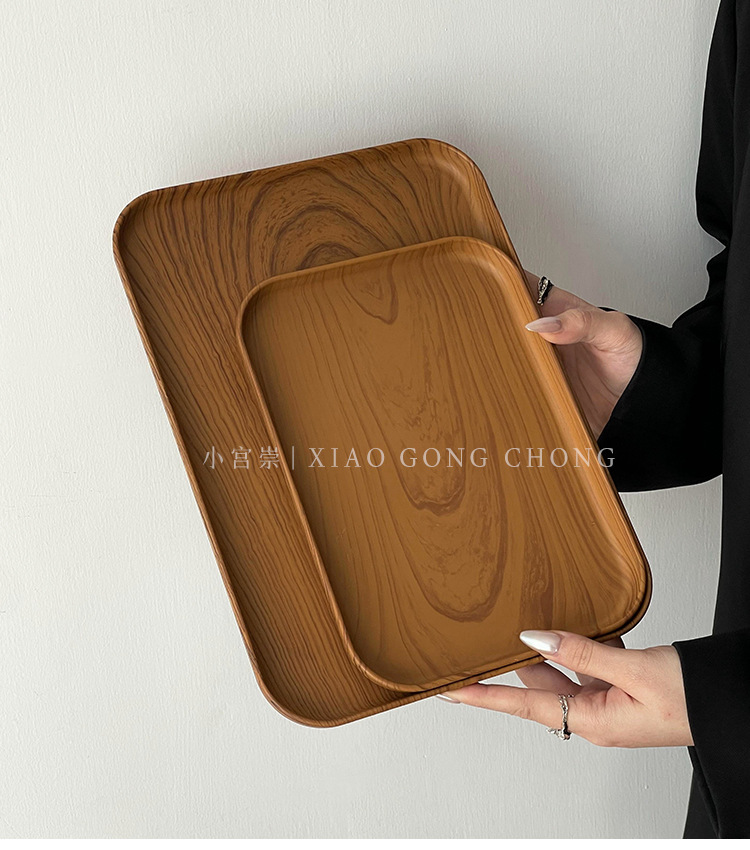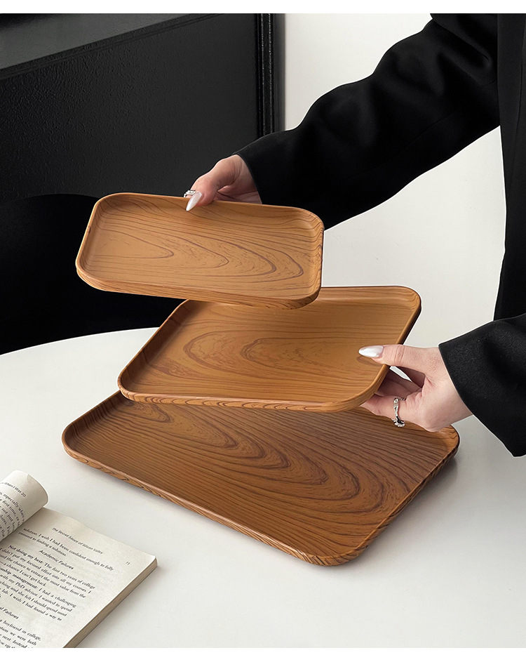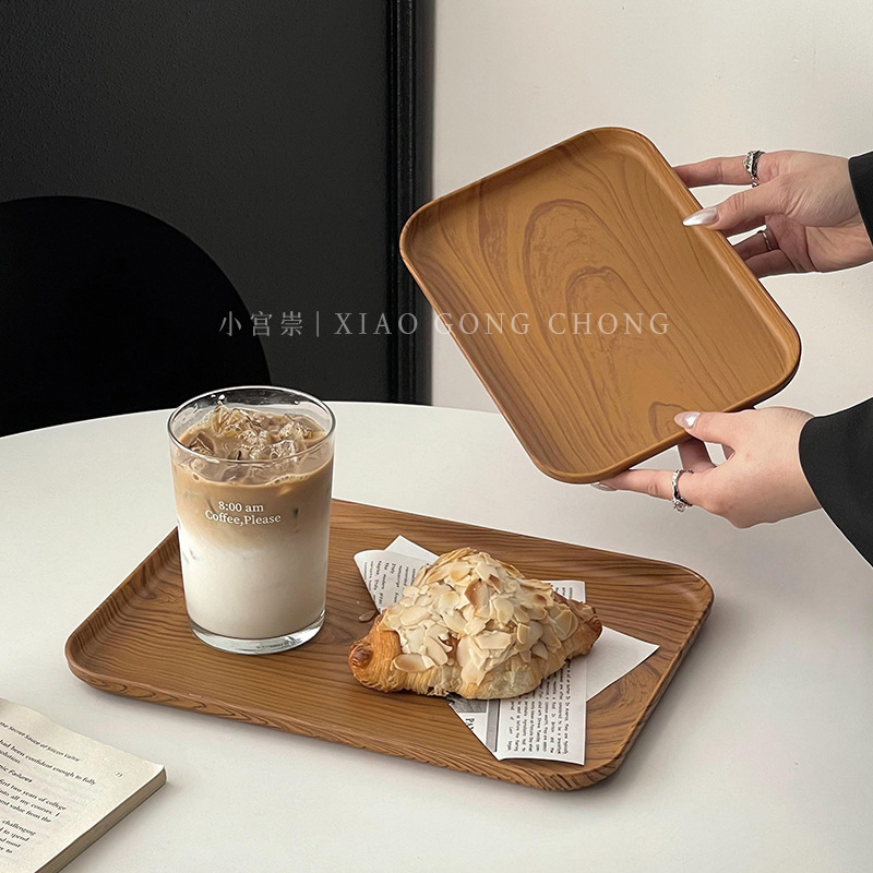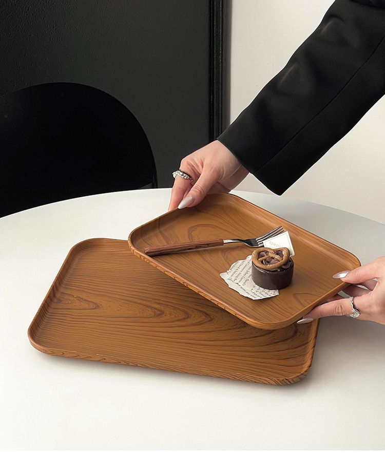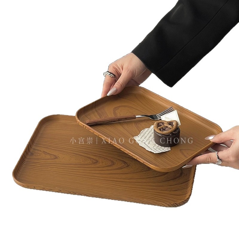 Пластиковый поднос с имитацией древесины, прямоугольный поднос для чая, обеденный поднос, кафе, десертный поднос, поднос для торта, поднос для закусок