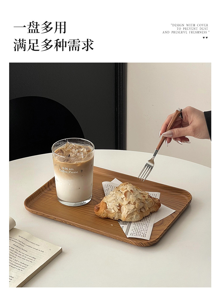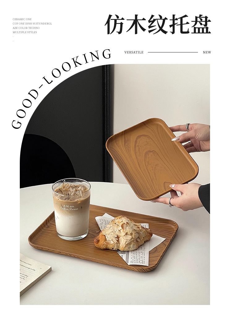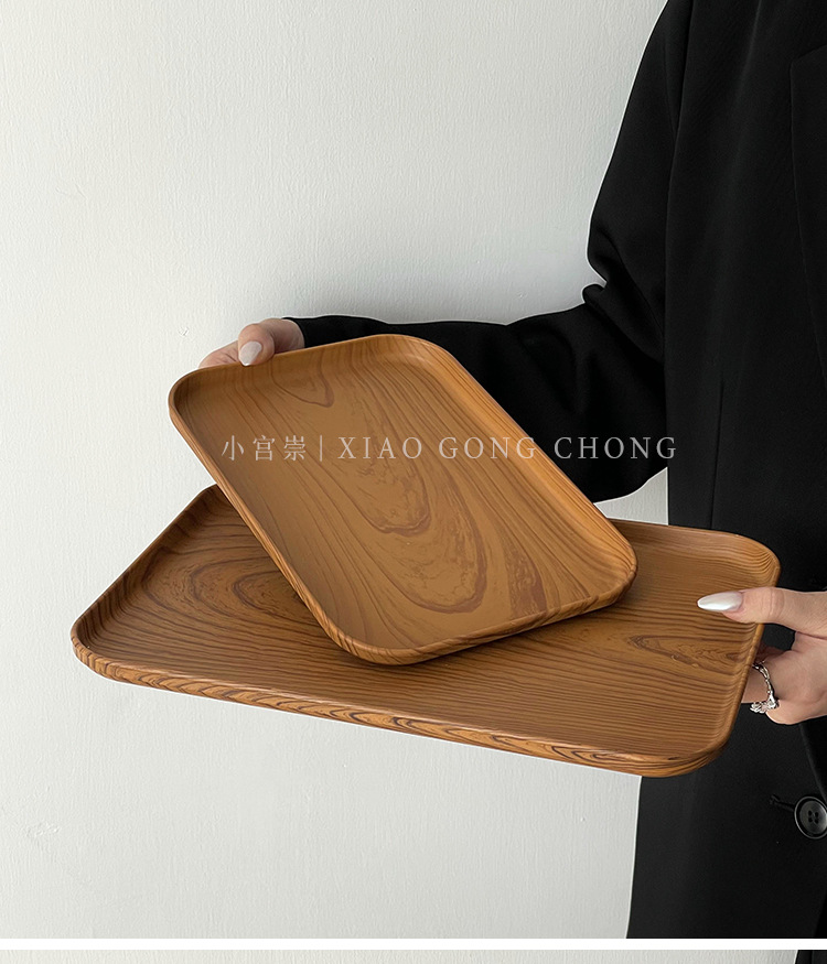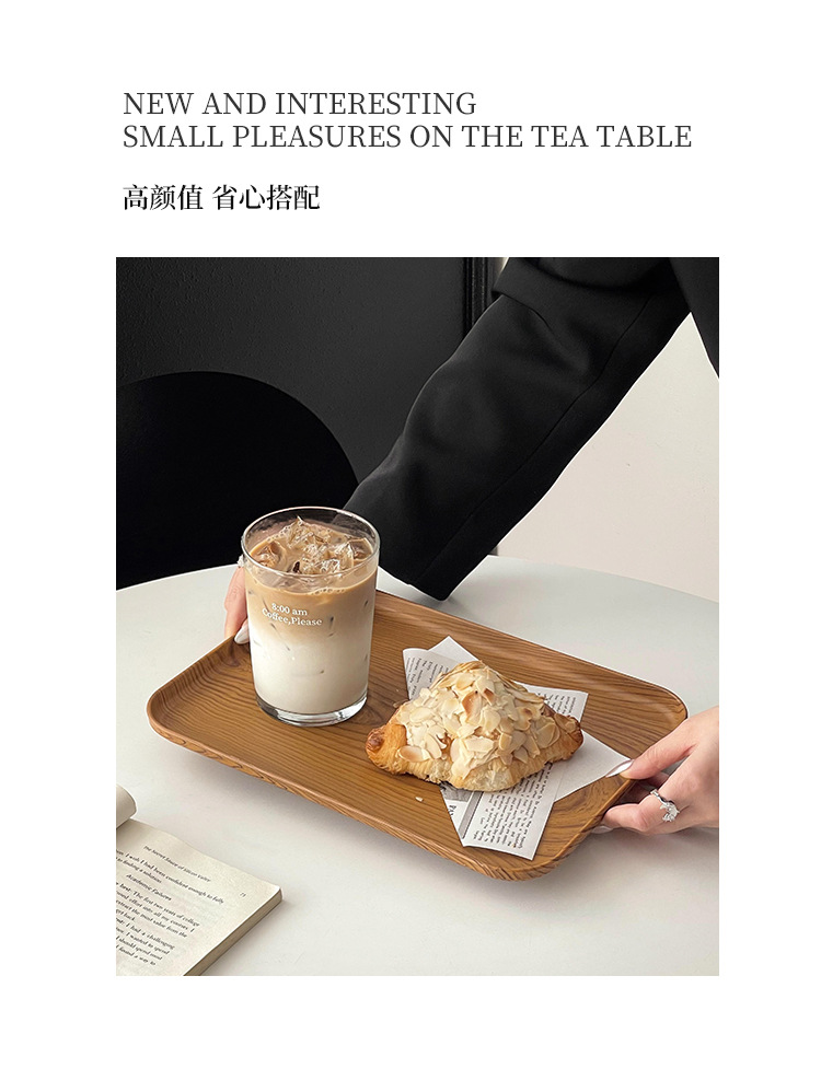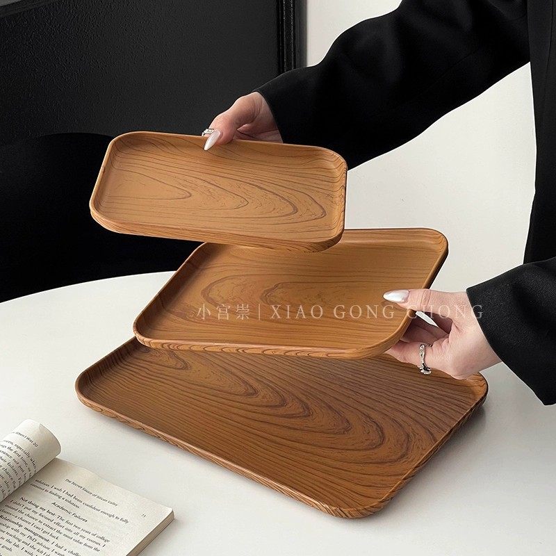 Пластиковый поднос с имитацией древесины, прямоугольный поднос для чая, обеденный поднос, кафе, десертный поднос, поднос для торта, поднос для закусок