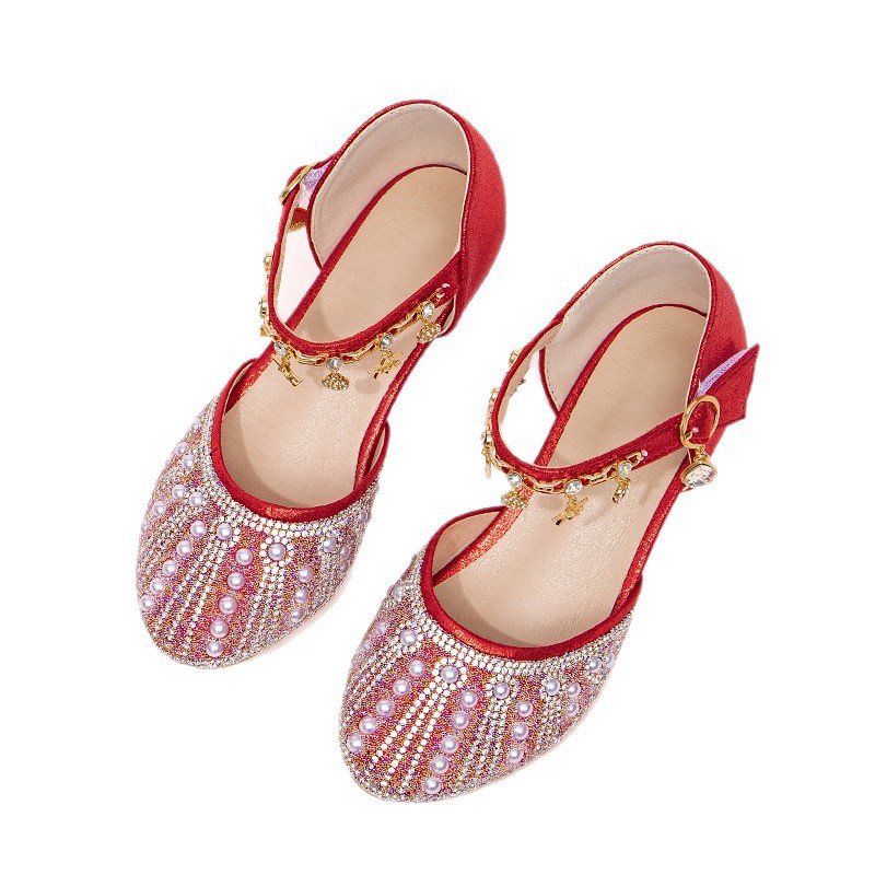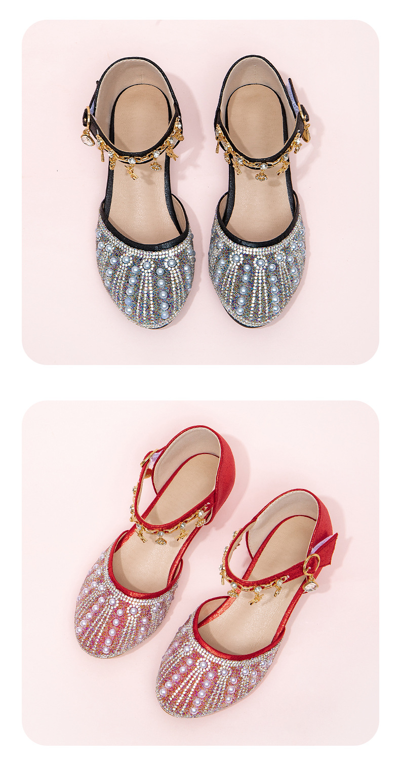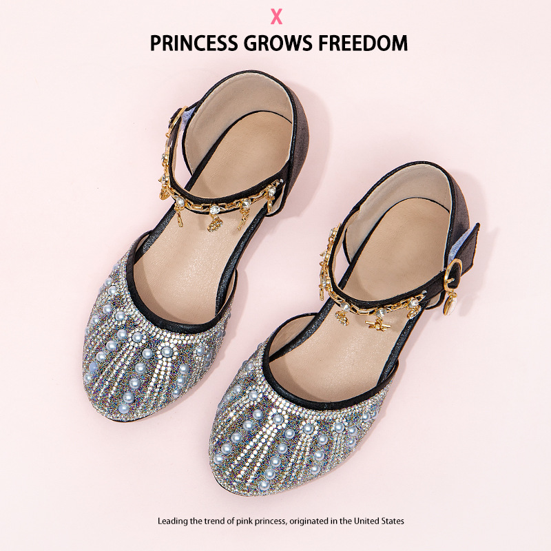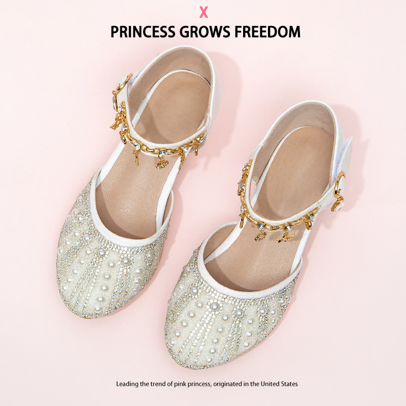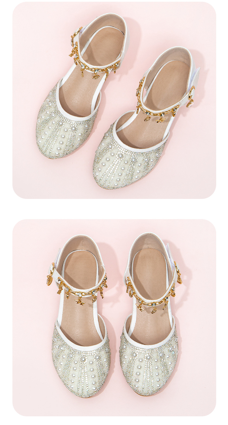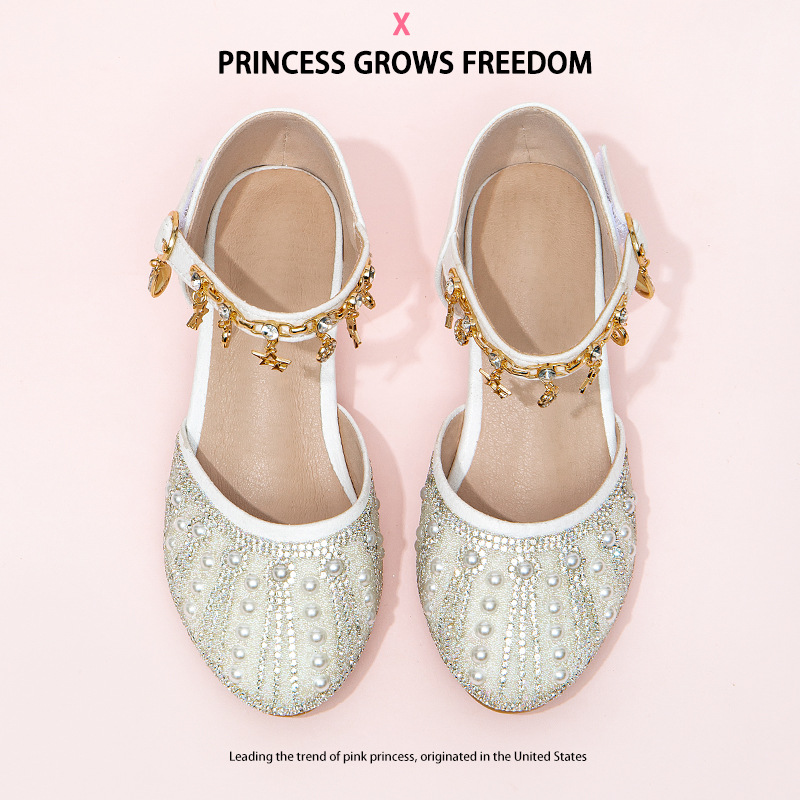 女童珍珠公主鞋2025秋新款儿童中空包头高跟凉鞋小女孩演出礼服鞋