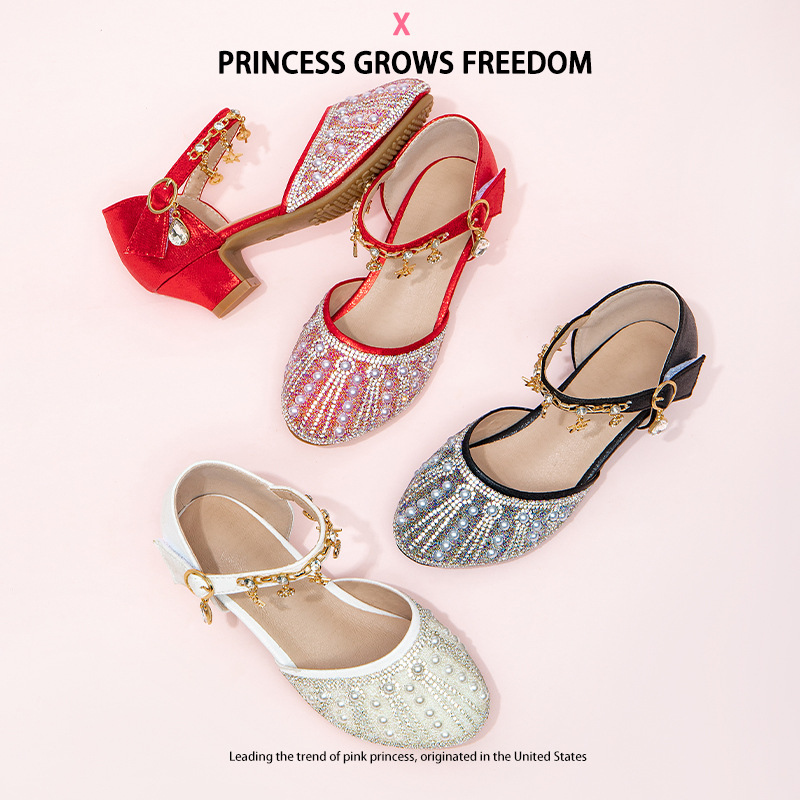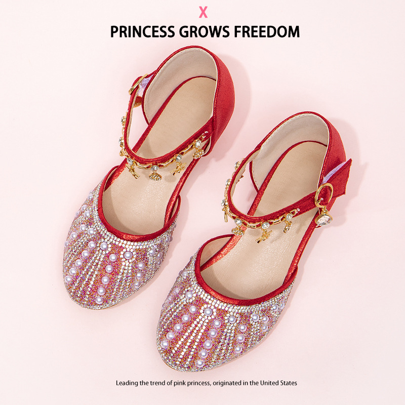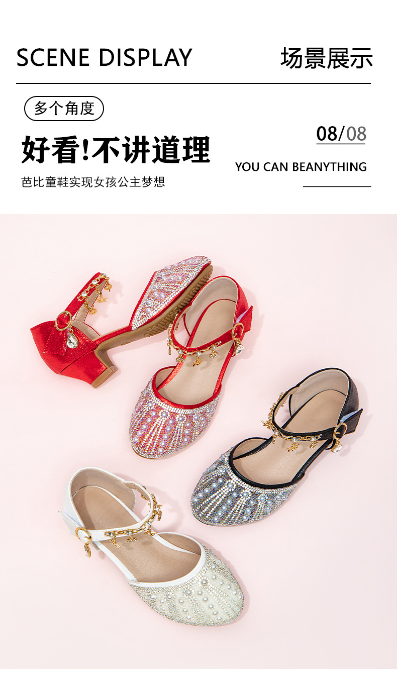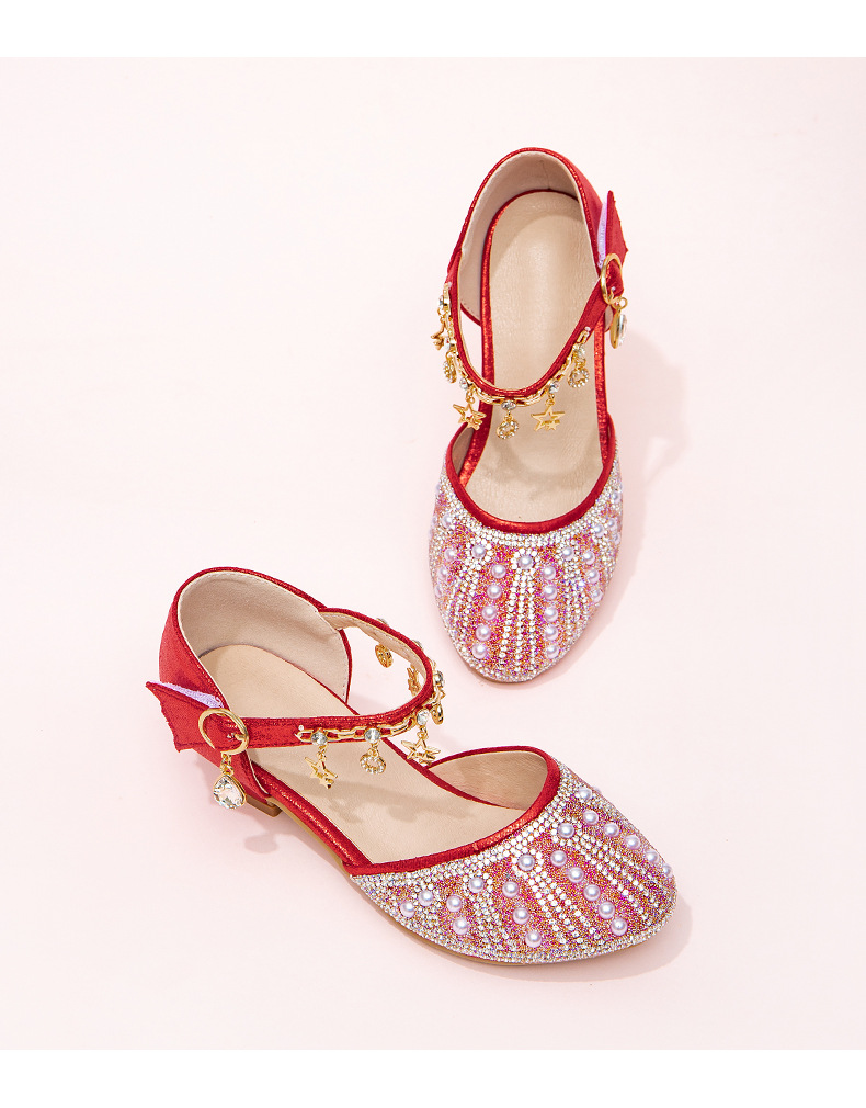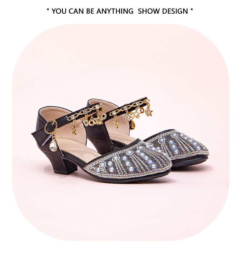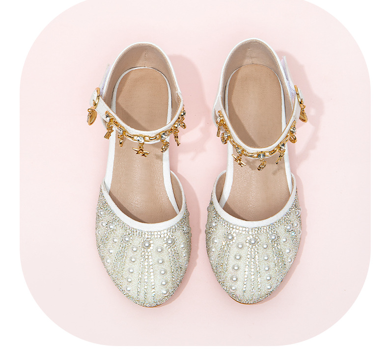 女童珍珠公主鞋2025秋新款儿童中空包头高跟凉鞋小女孩演出礼服鞋