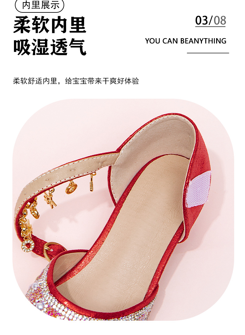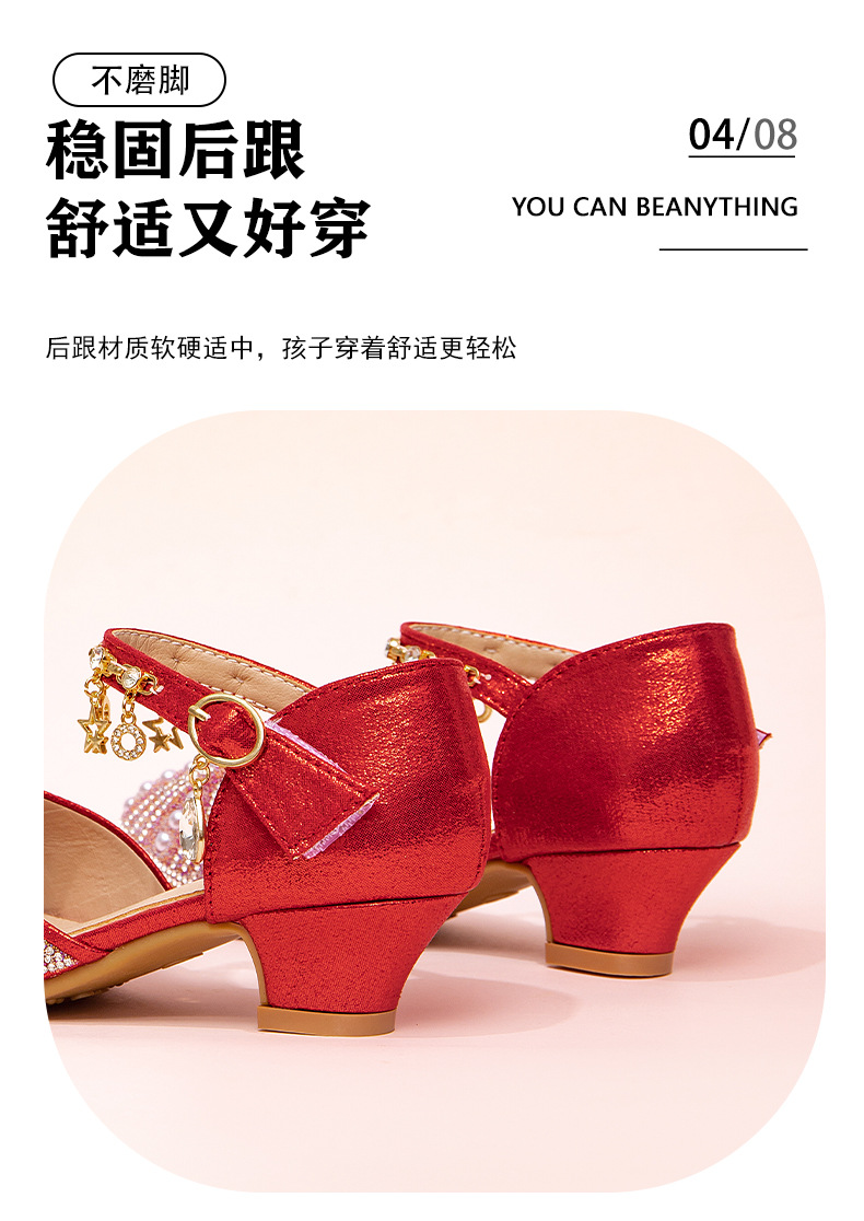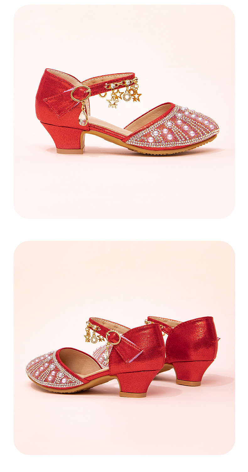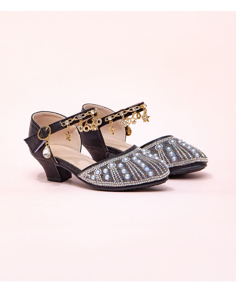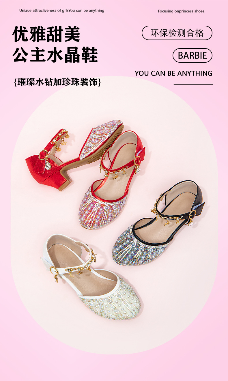 女童珍珠公主鞋2025秋新款儿童中空包头高跟凉鞋小女孩演出礼服鞋