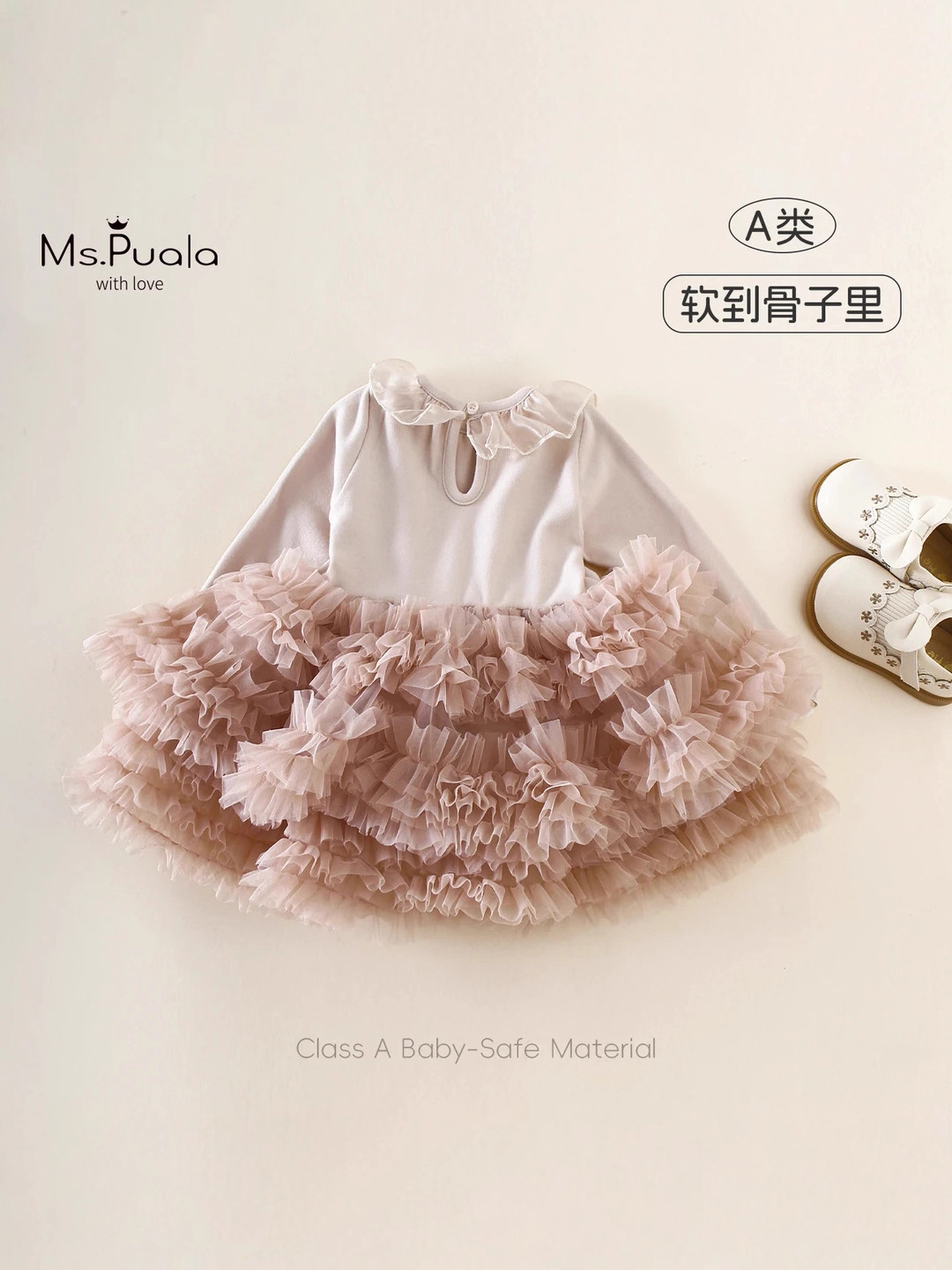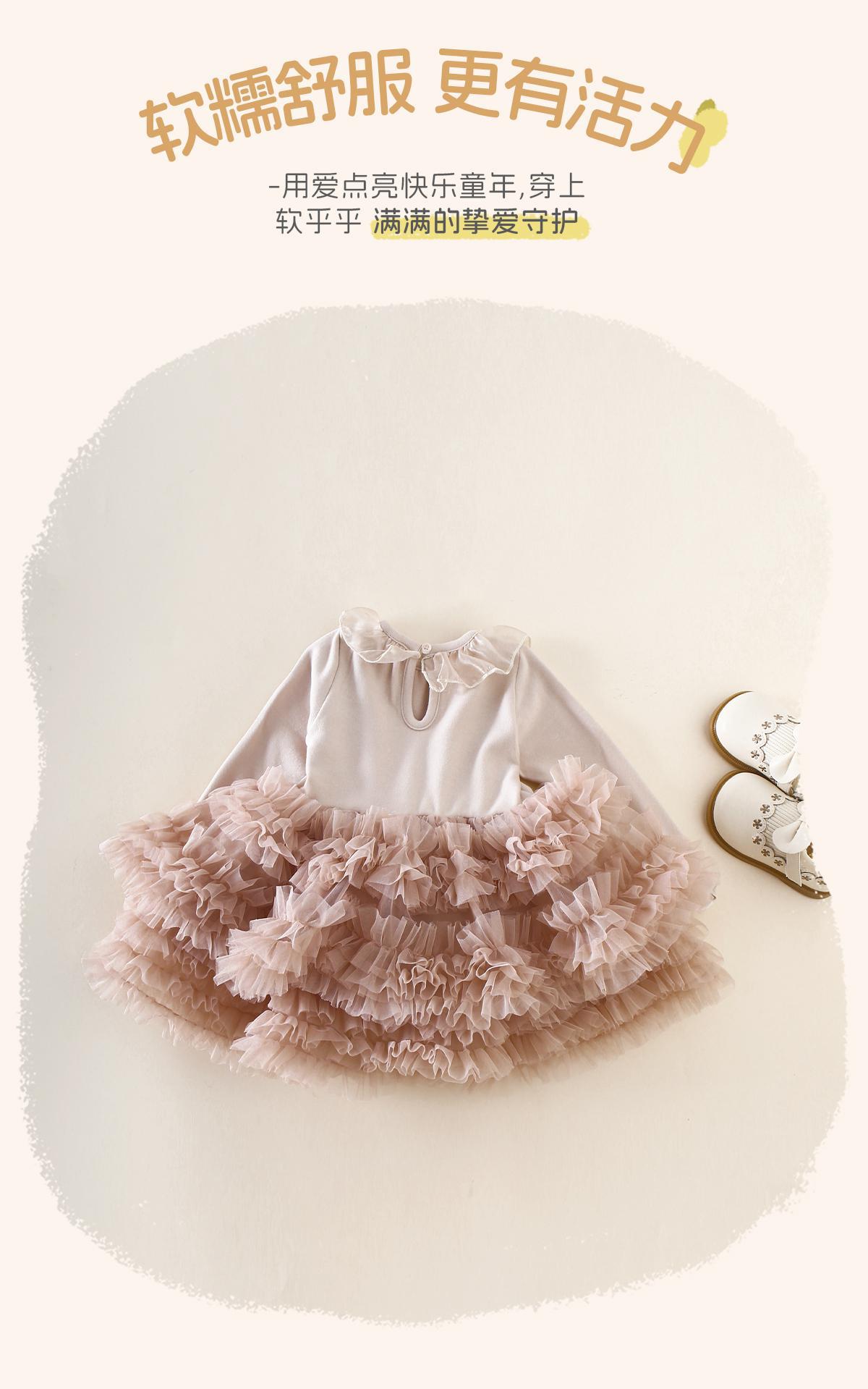 秋季新款A类童装裙子婴幼童女宝宝秋款长袖蛋糕蓬蓬裙轻柔连衣裙