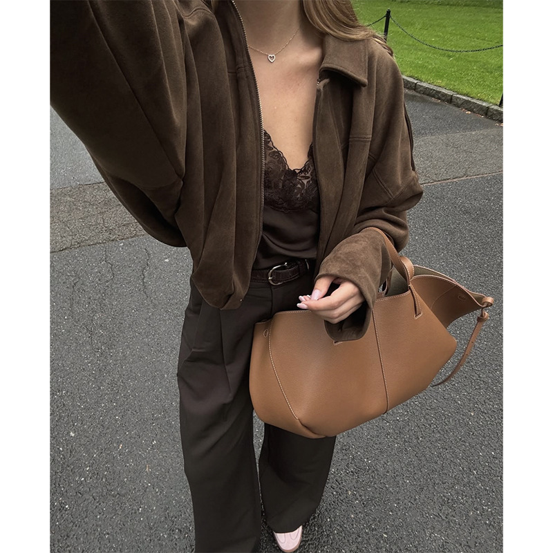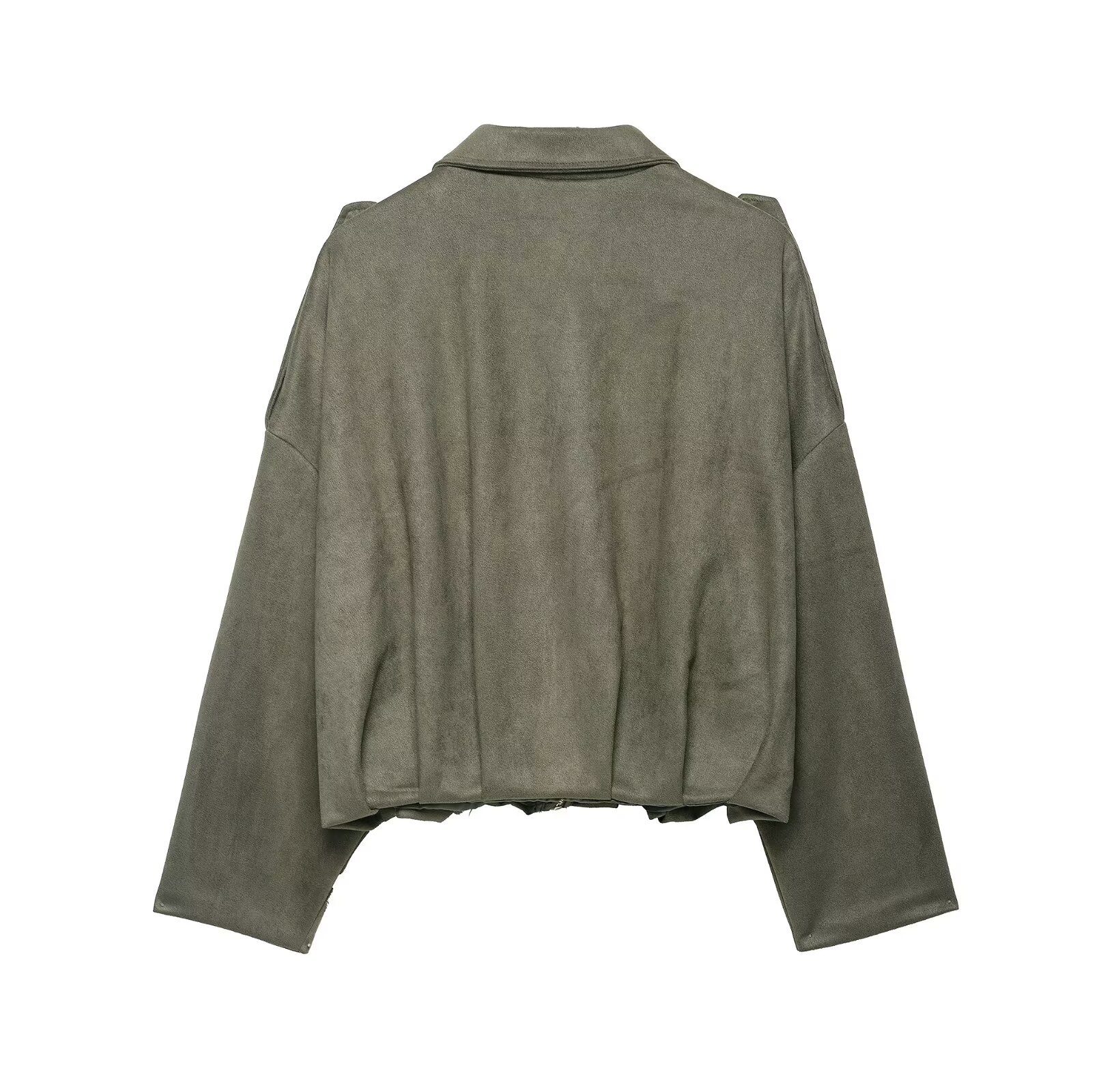 В наличии: оптовая продажа женской одежды для трансграничной торговли – замшевая куртка-пальто в ретро-стиле (европейский и американский), с отложным воротником и молнией, для осени и зимы.
