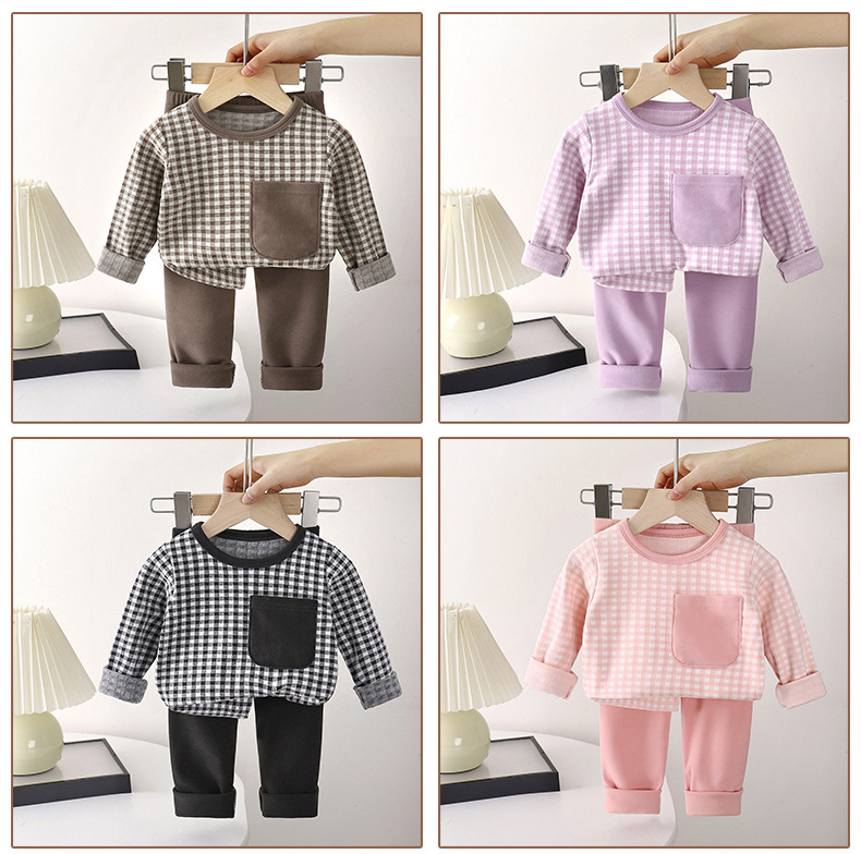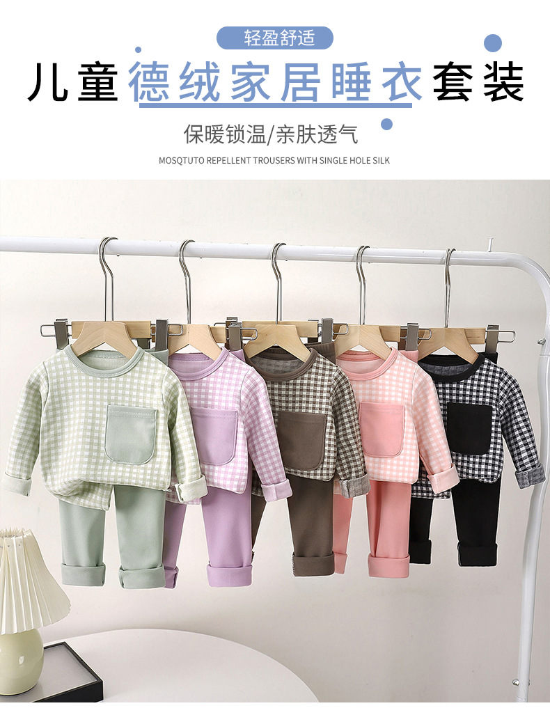 儿童家居服套装秋季新款男童睡衣德绒保暖内衣套装女童秋裤童装