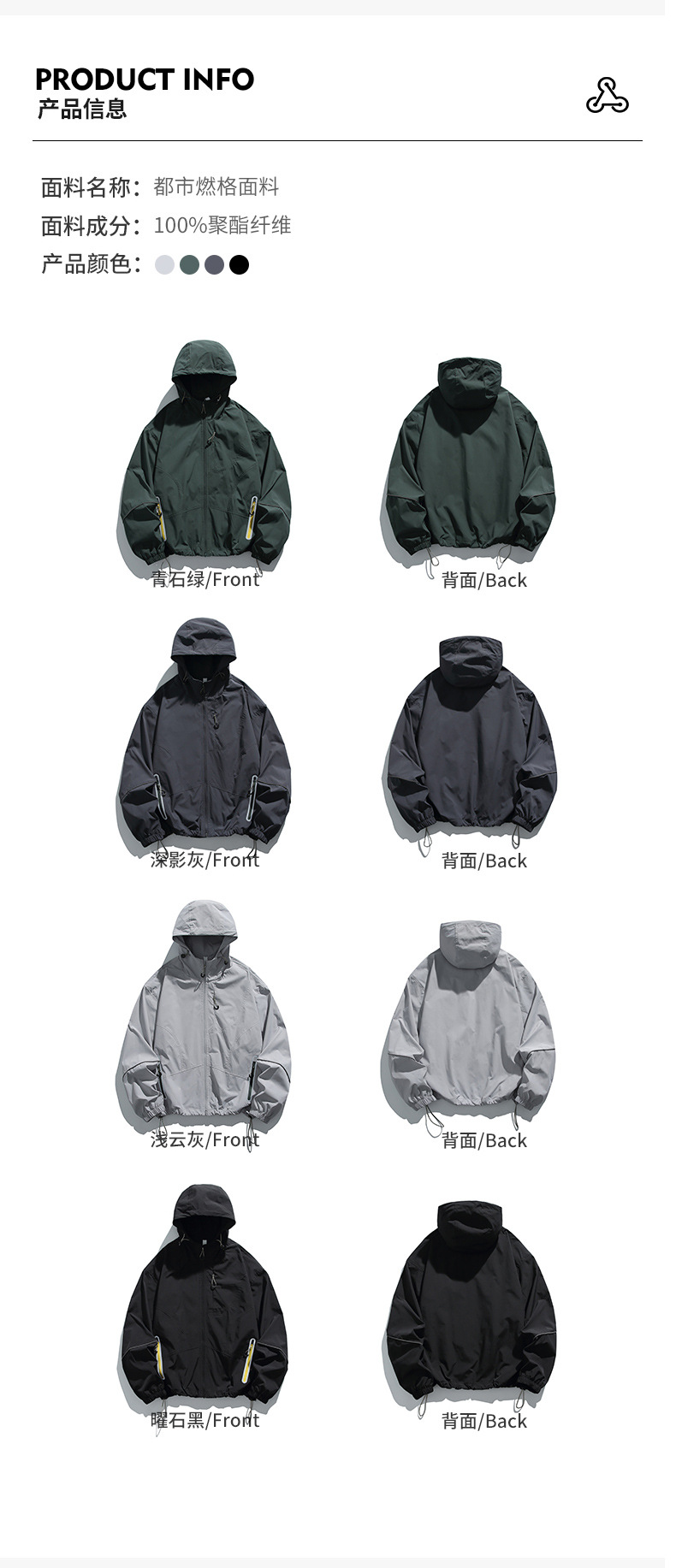 светло-облачно-серый; синий камень, зеленый; глубокий теневой серый; обсидиановый черный; Таблица размеров