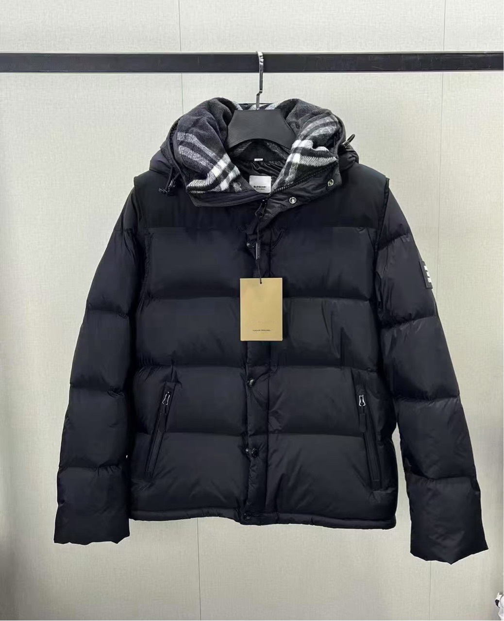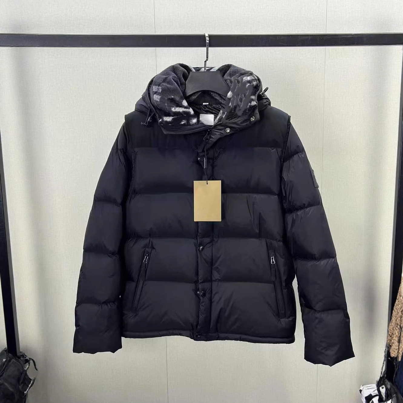 巴家羽绒服男女同款脱袖外套黑灰领可拆袖外套外贸跨境