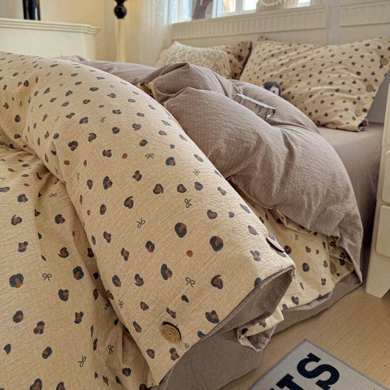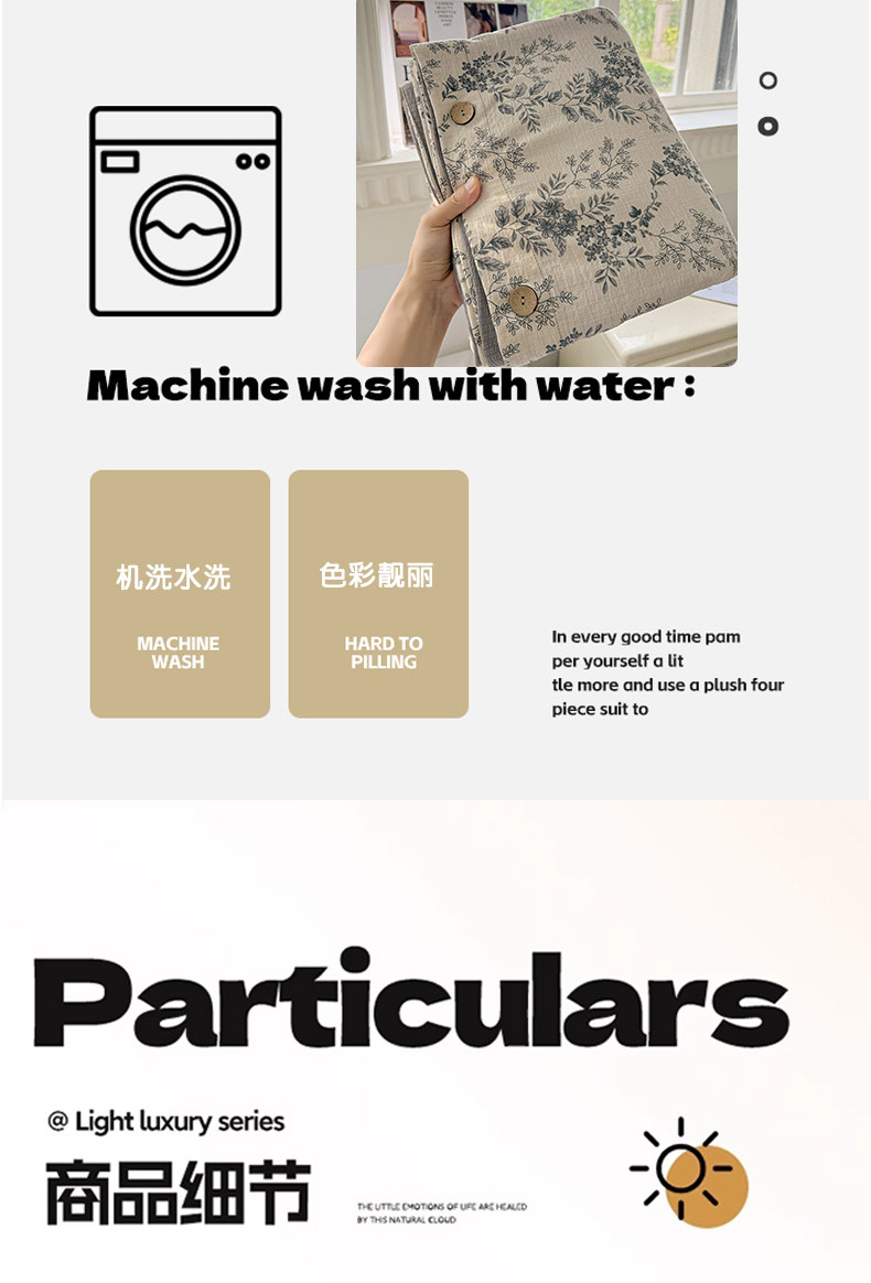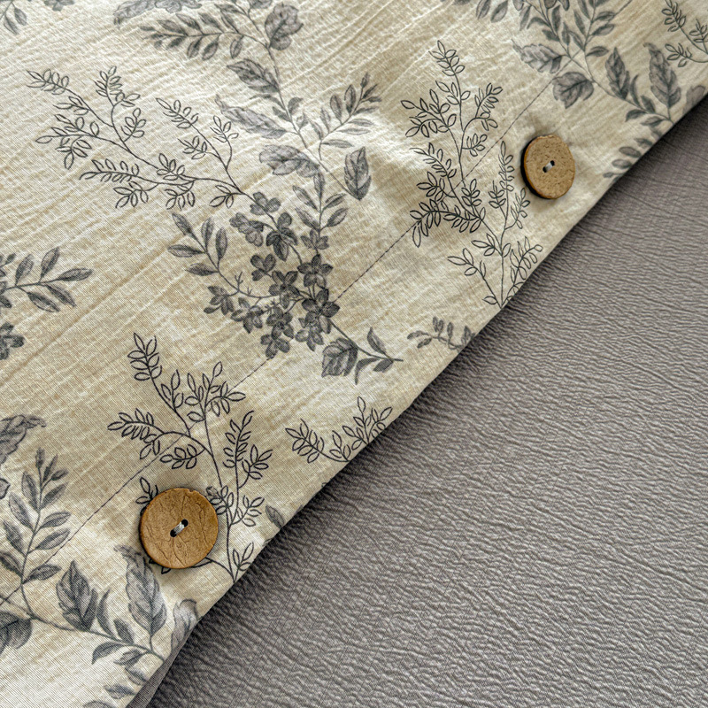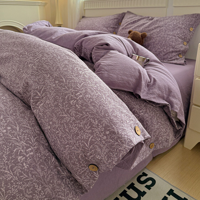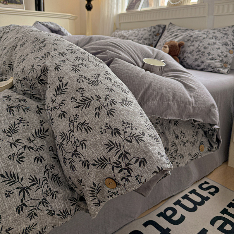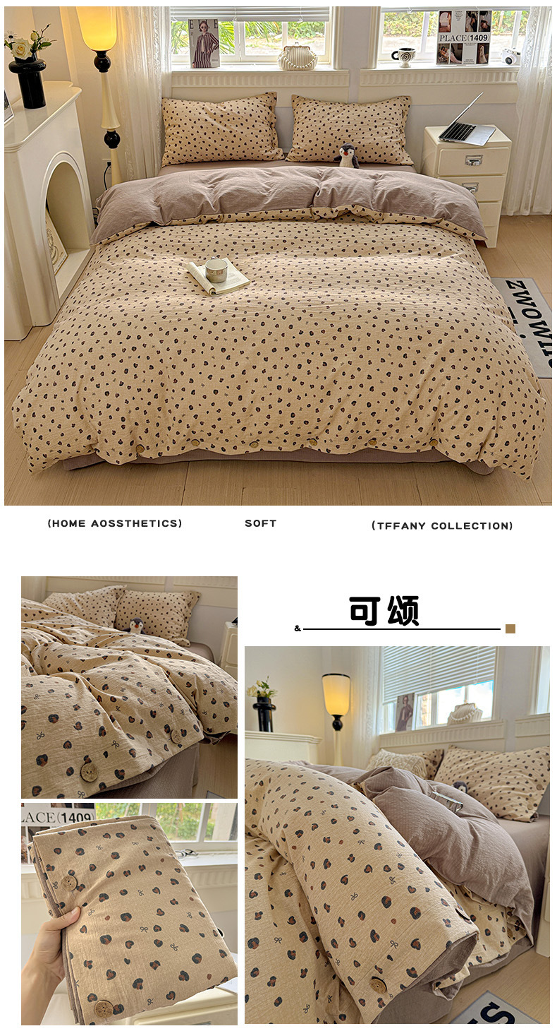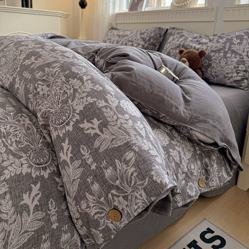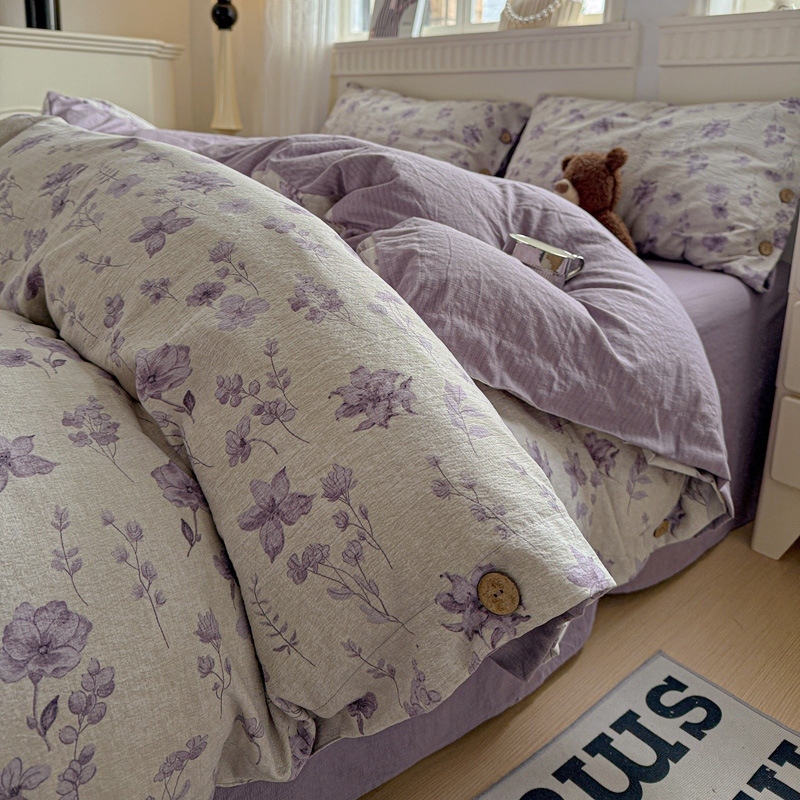 纯棉原麻四件套复古碎花纽扣款全棉床单笠被罩三件套a类床上用品