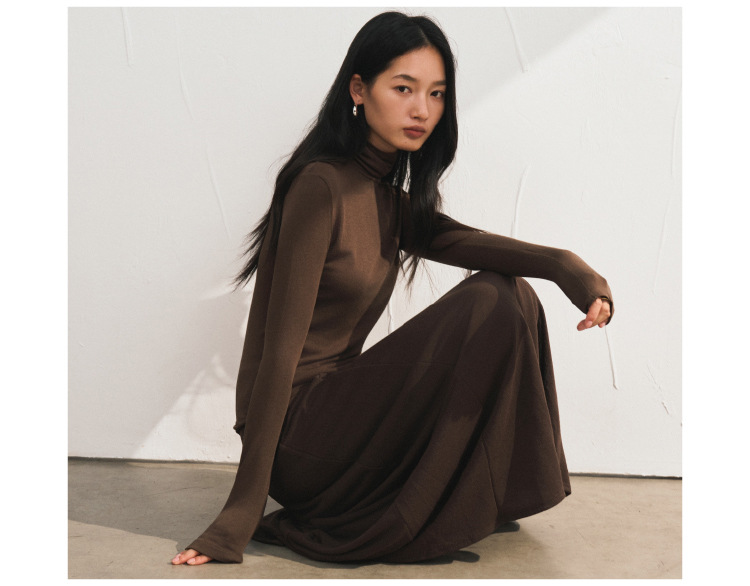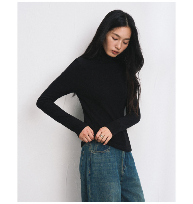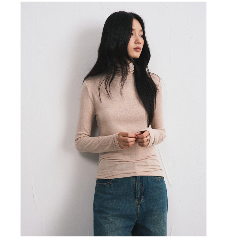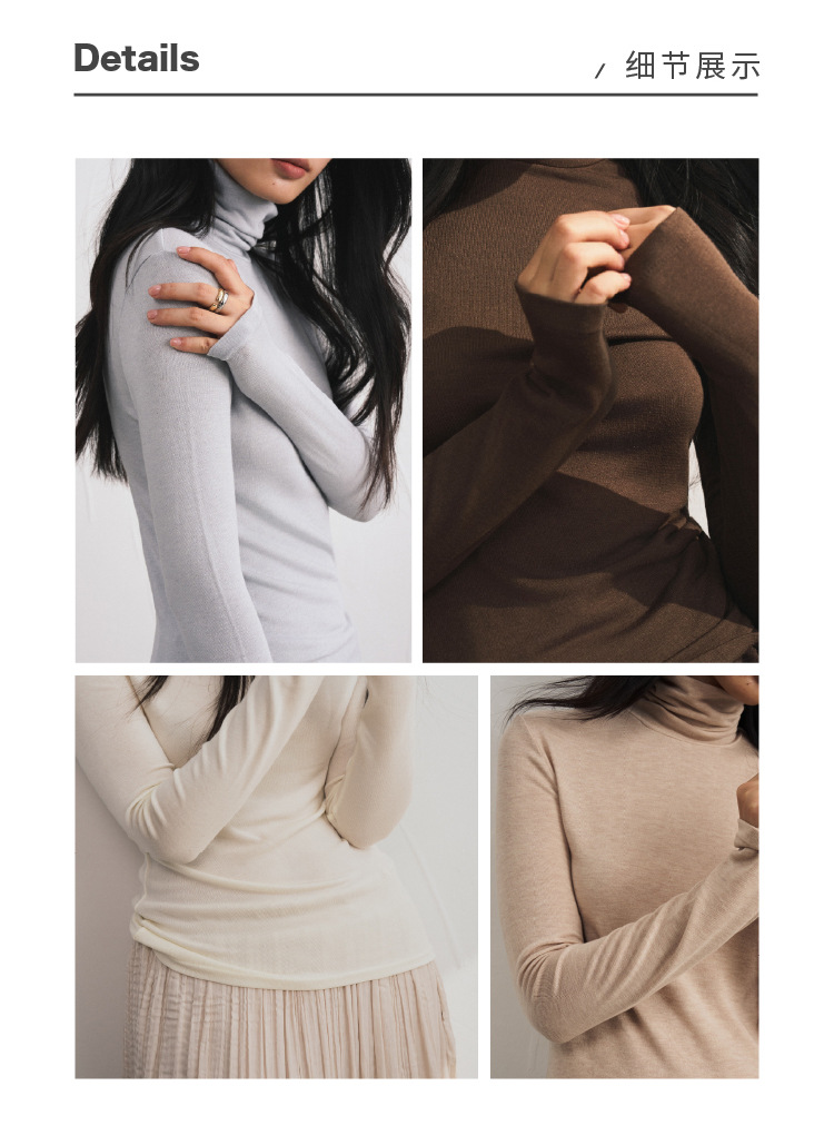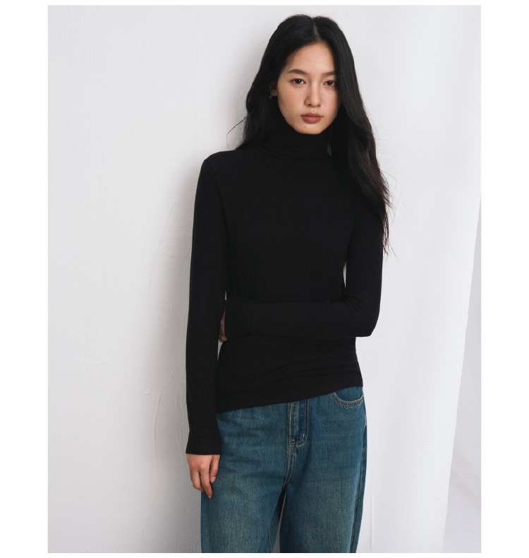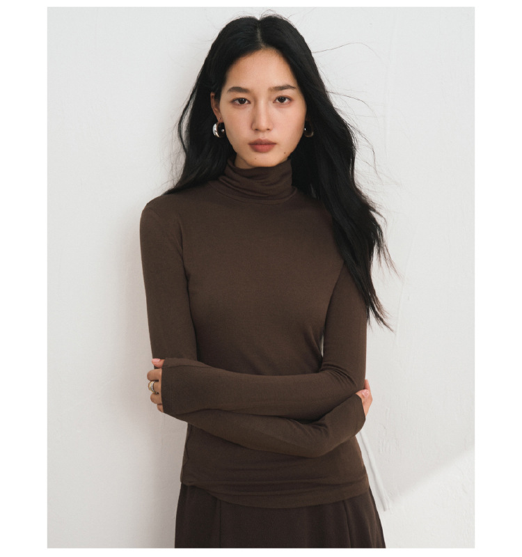 秋冬山羊绒高领打底衫女天丝莫代尔修身亲肤T恤基础款弹力针织衫