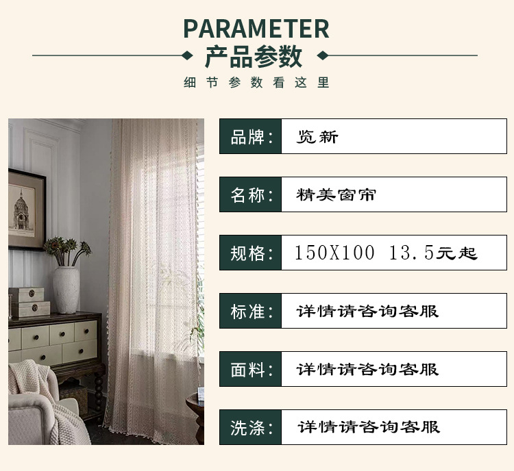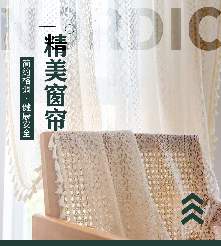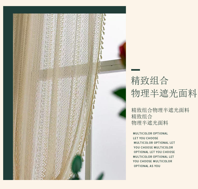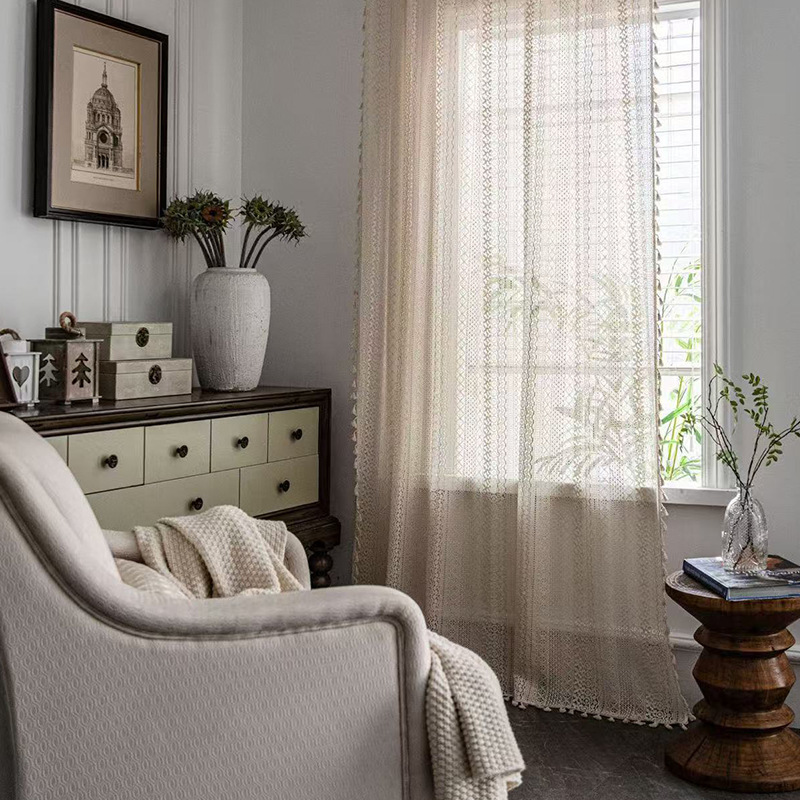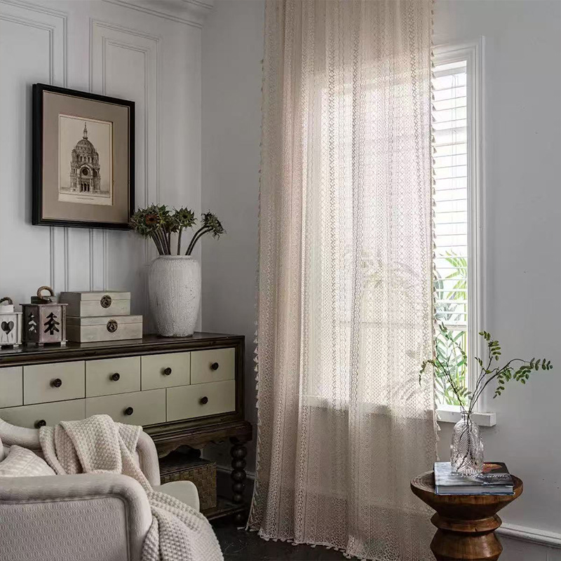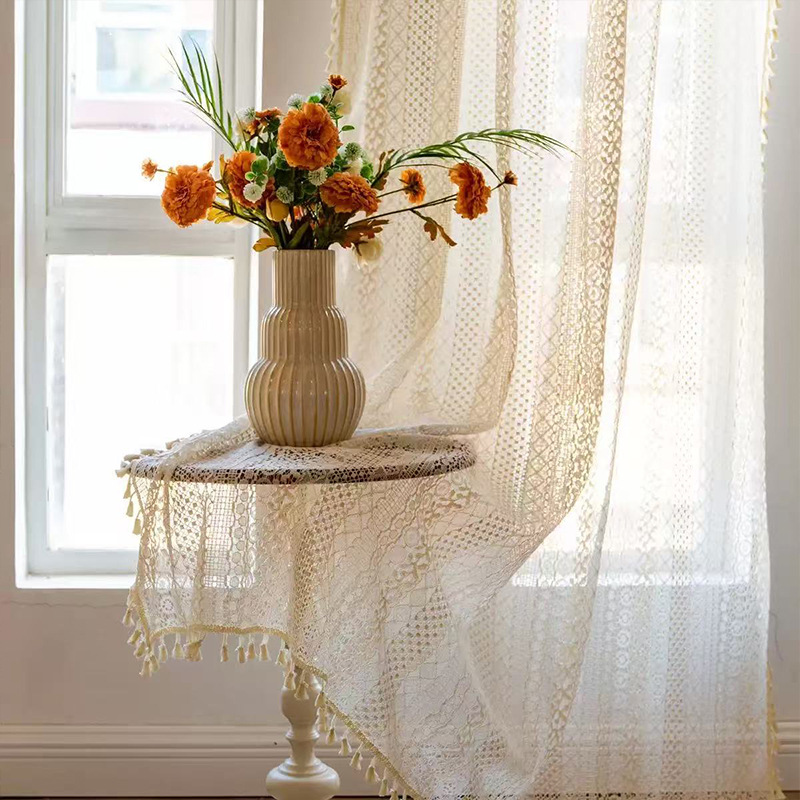 Бежевые шторы в богемном стиле с кистями и карнизом, кружевные винтажные шторы, доступны для дропшиппинга на Temu.