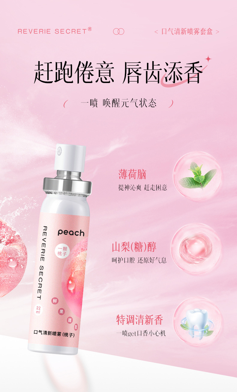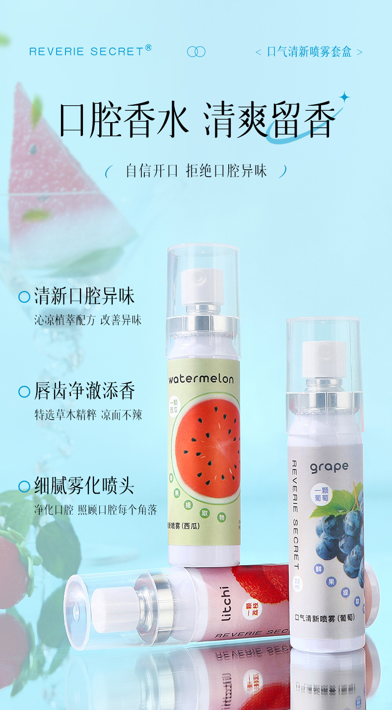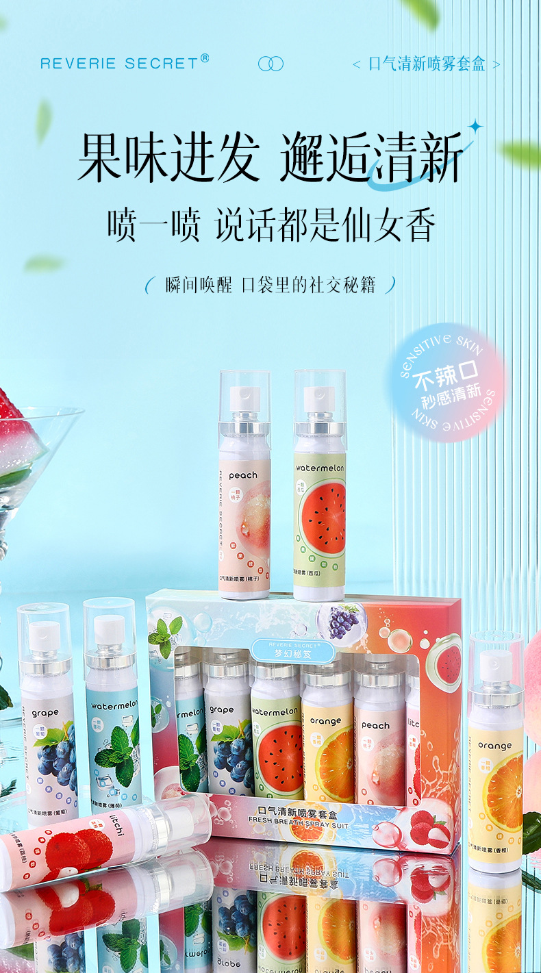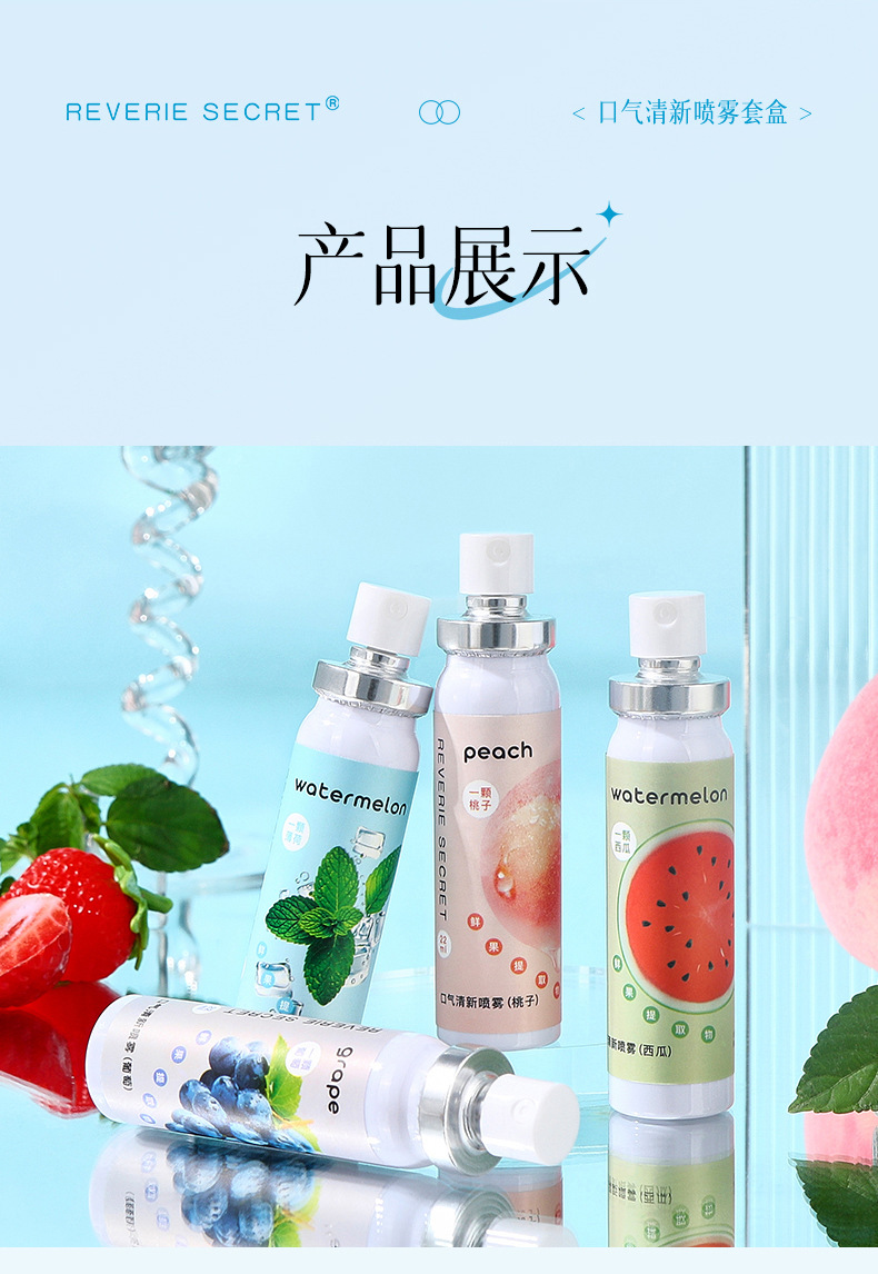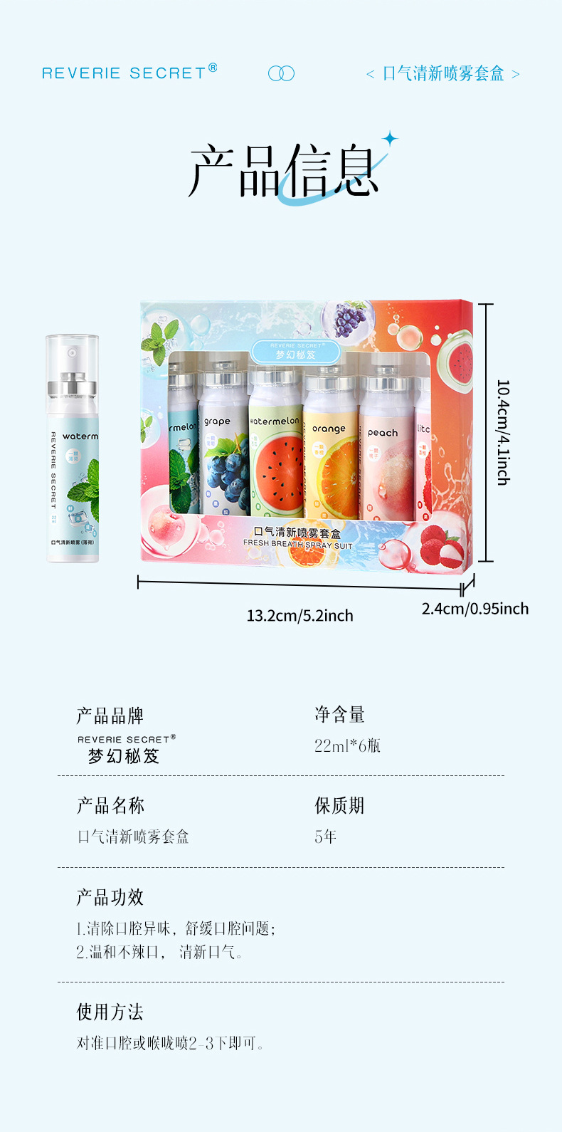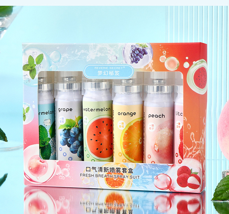 梦幻秘笈口气清新喷雾口腔喷雾套装水蜜桃葡萄荔枝西瓜香橙22ml