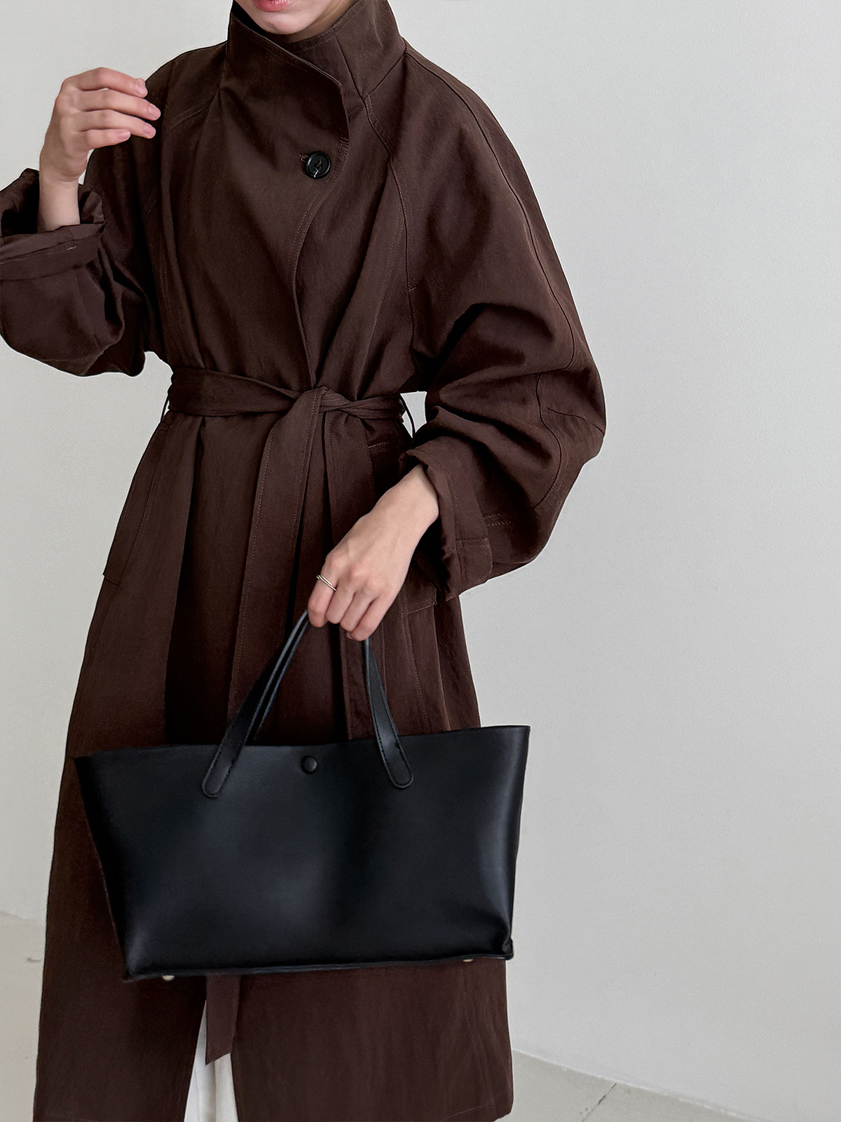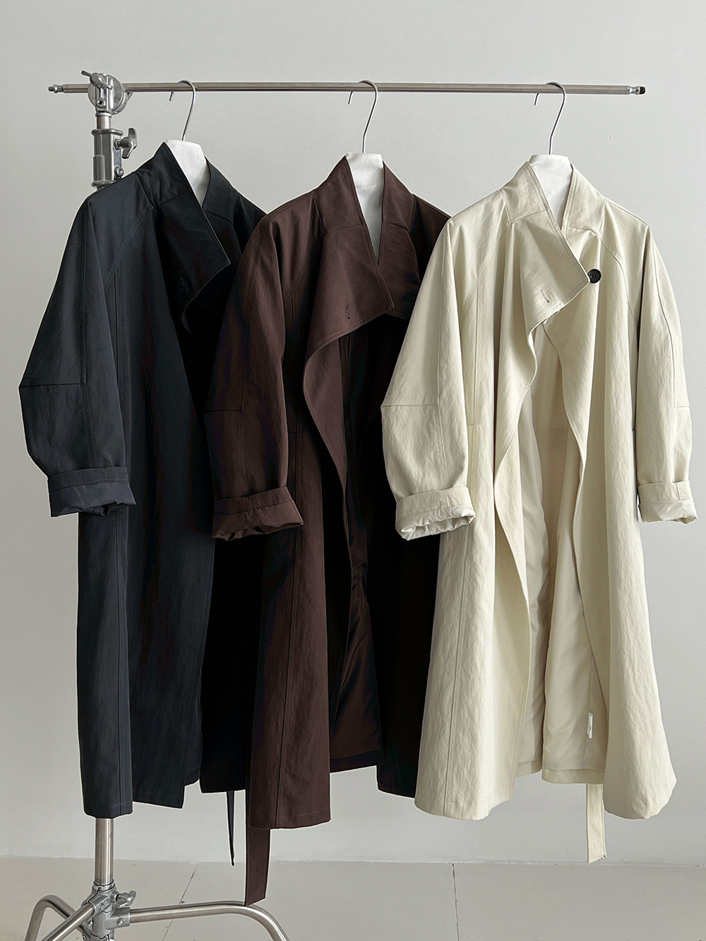 鹿西韩系高级感一粒扣立领宽松大衣女秋季新款中长款风衣外套3712