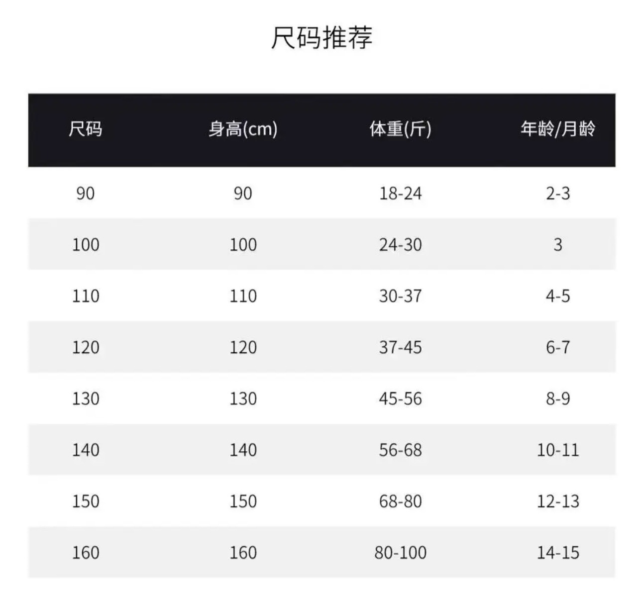 110 см; 120 см; 130см; 140 см; 150 см; 160см; 170см