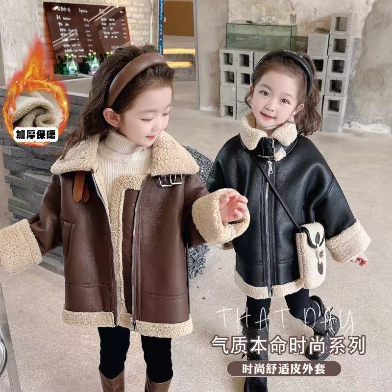 Детская кожаная куртка осень-зима 2025, новая теплая зимняя куртка для мальчиков и девочек, утепленная бархатная зимняя одежда для малышей