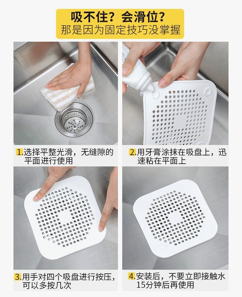 硅胶地漏垫家用厨房水槽防堵塞过滤贴卫生间下水道毛发吸盘过滤网